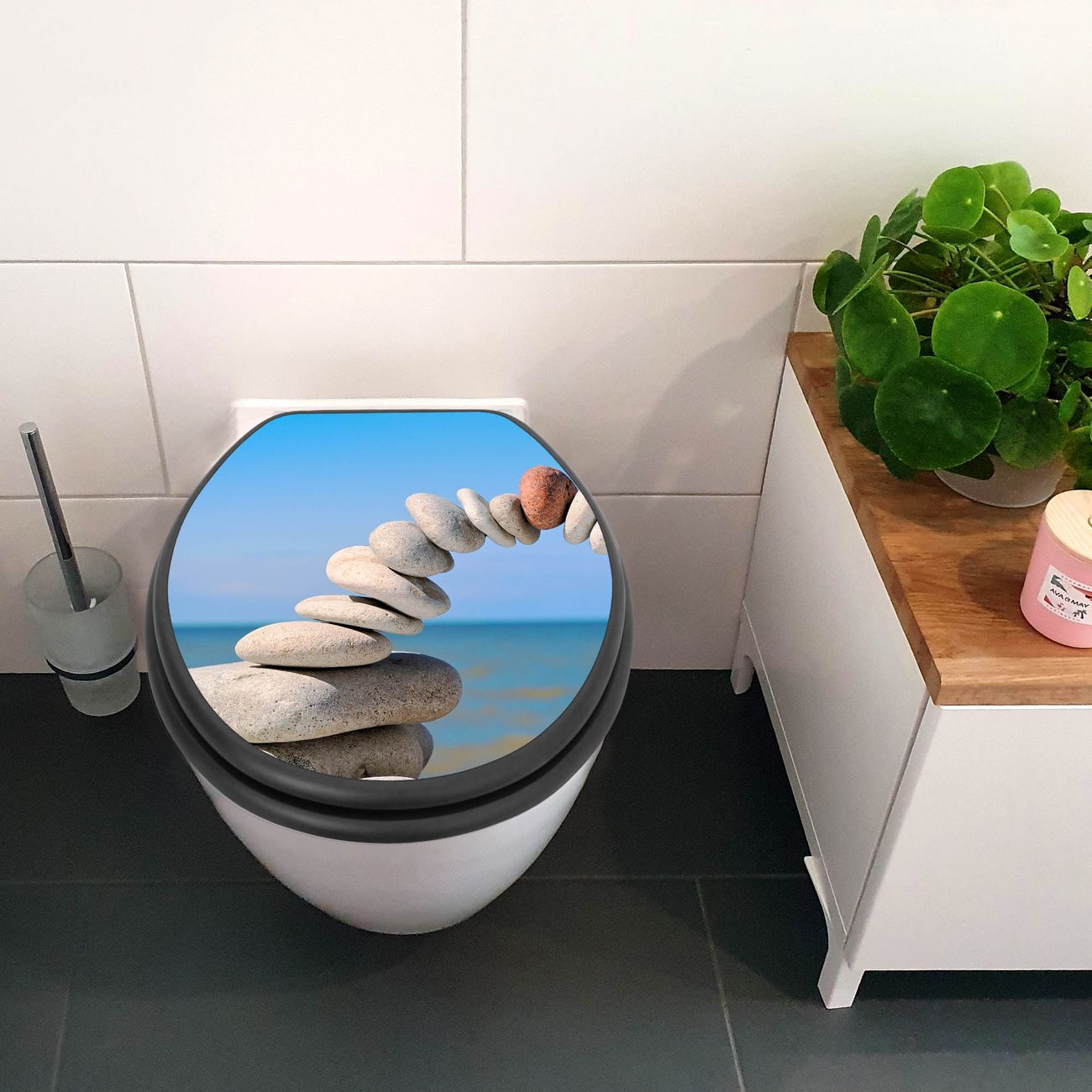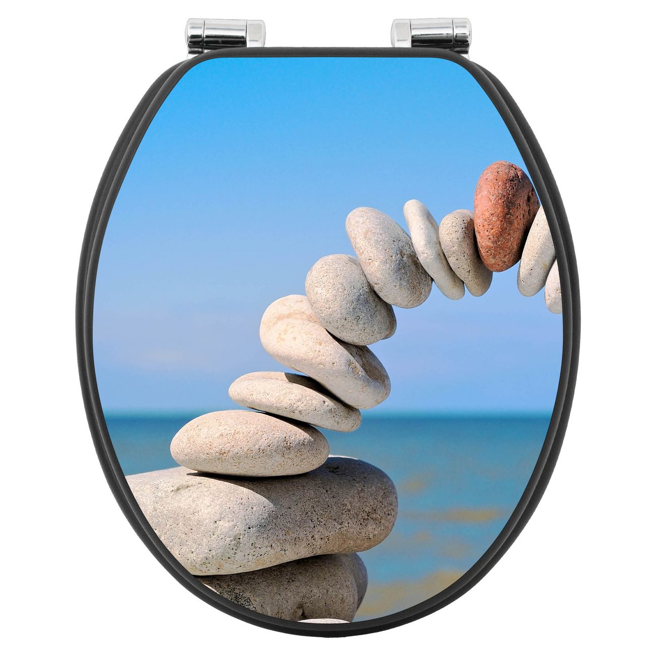 WC Sitz Anthrazit mit Absenkautomatik Motiv Steine&Meer