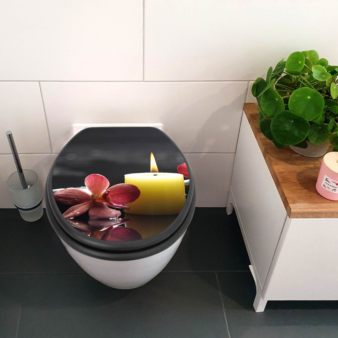 WC Sitz Anthrazit mit Absenkautomatik Motiv Steine & Relax 5