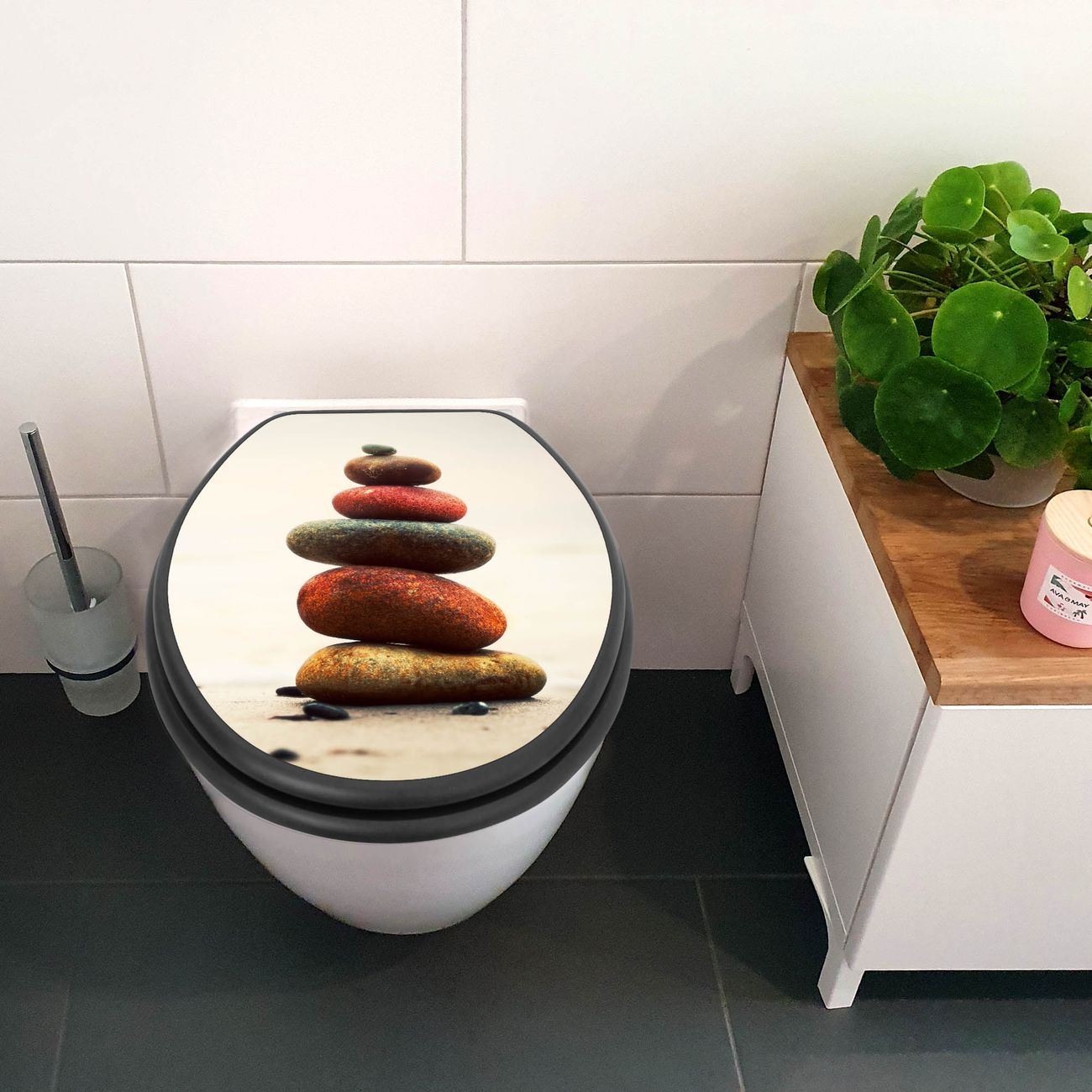 WC Sitz Anthrazit mit Absenkautomatik Motiv Steinmännchen