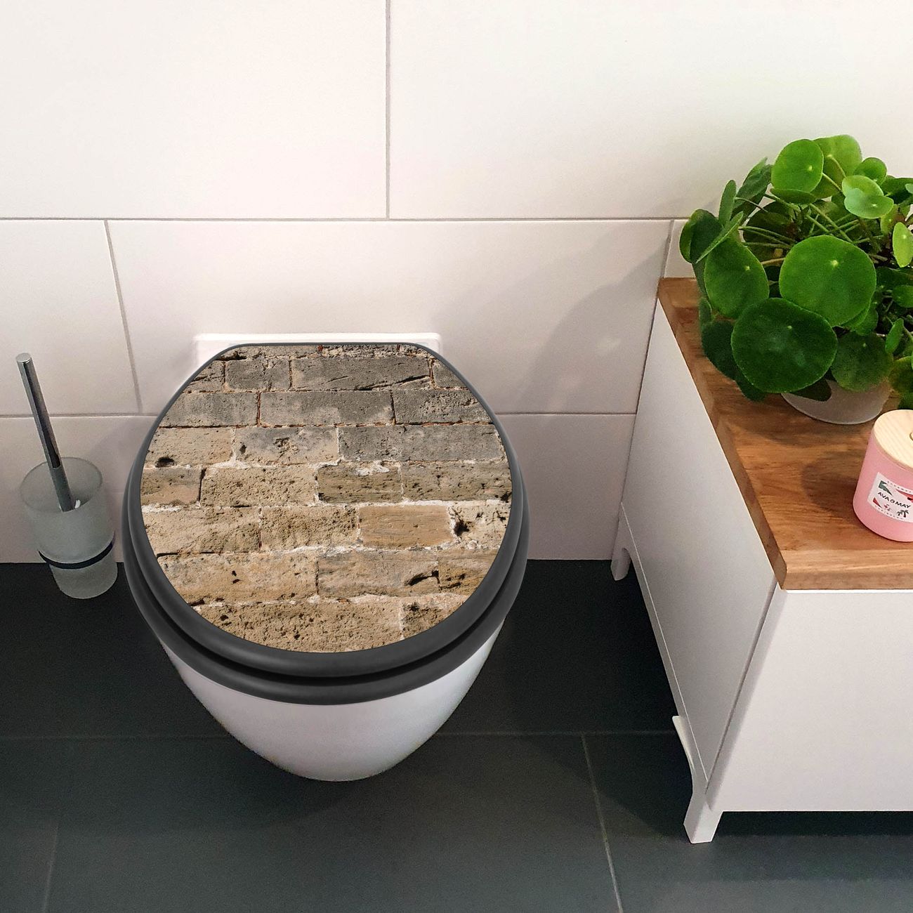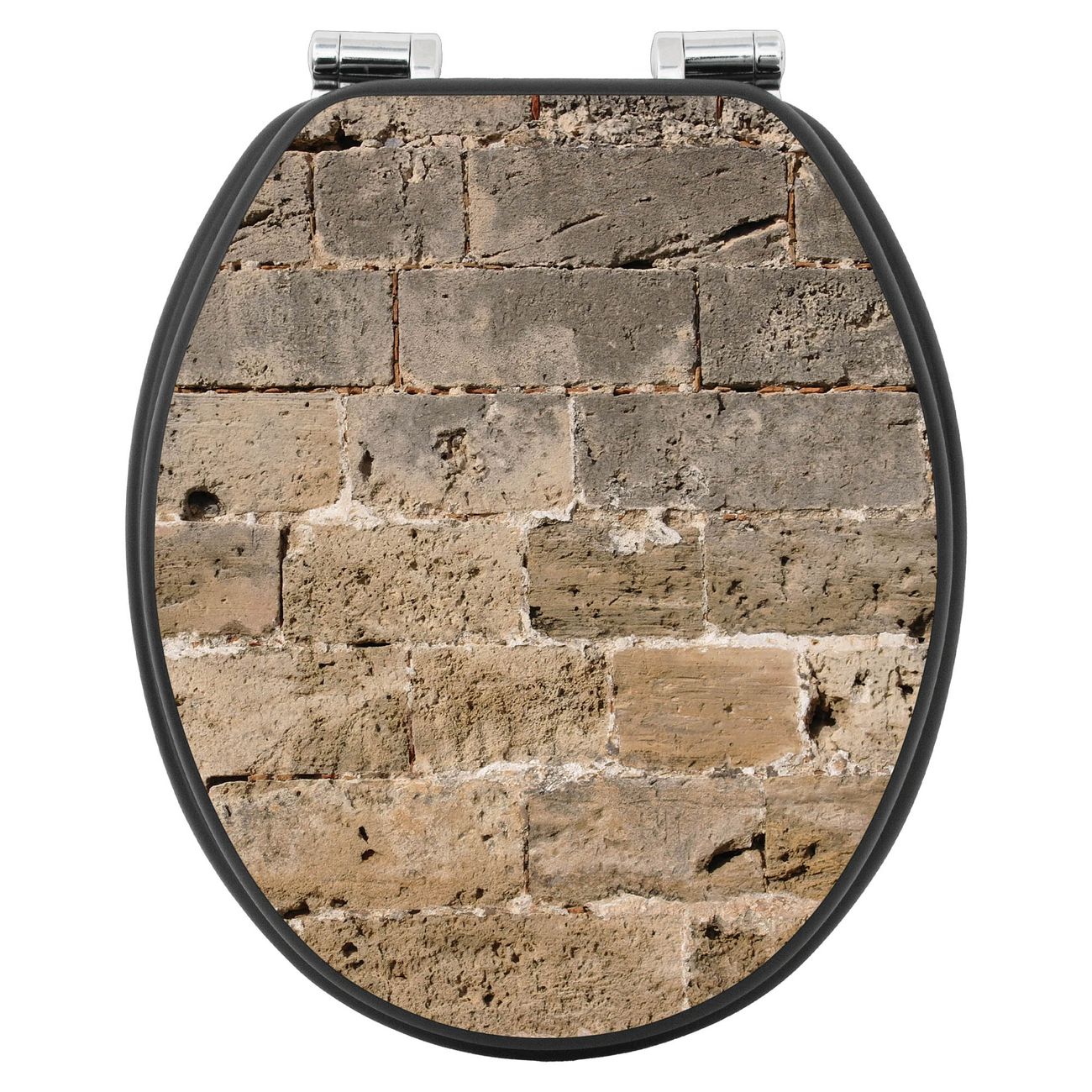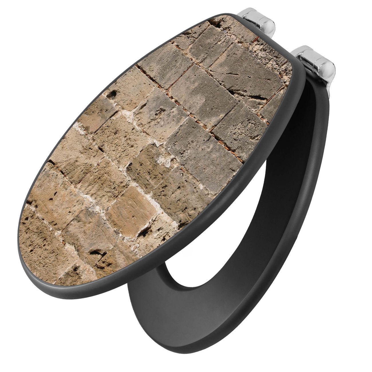 WC Sitz Anthrazit mit Absenkautomatik Motiv Steinwand Antik