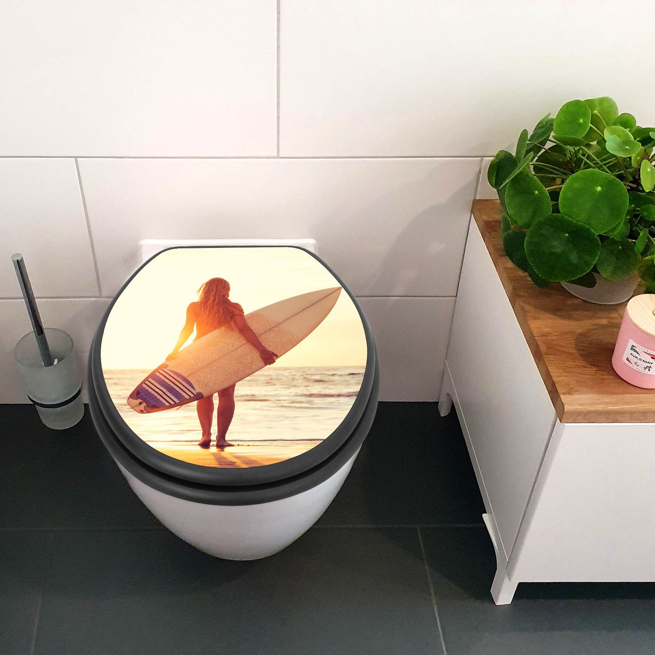 WC Sitz Anthrazit mit Absenkautomatik Motiv Surfer Girl