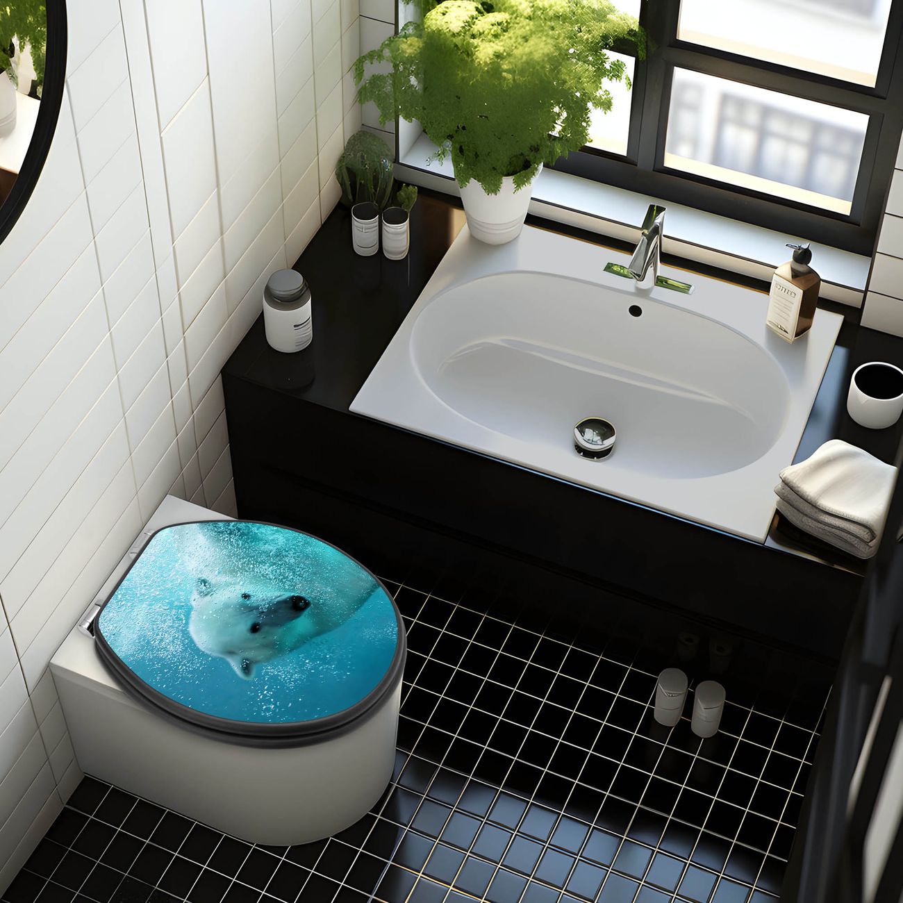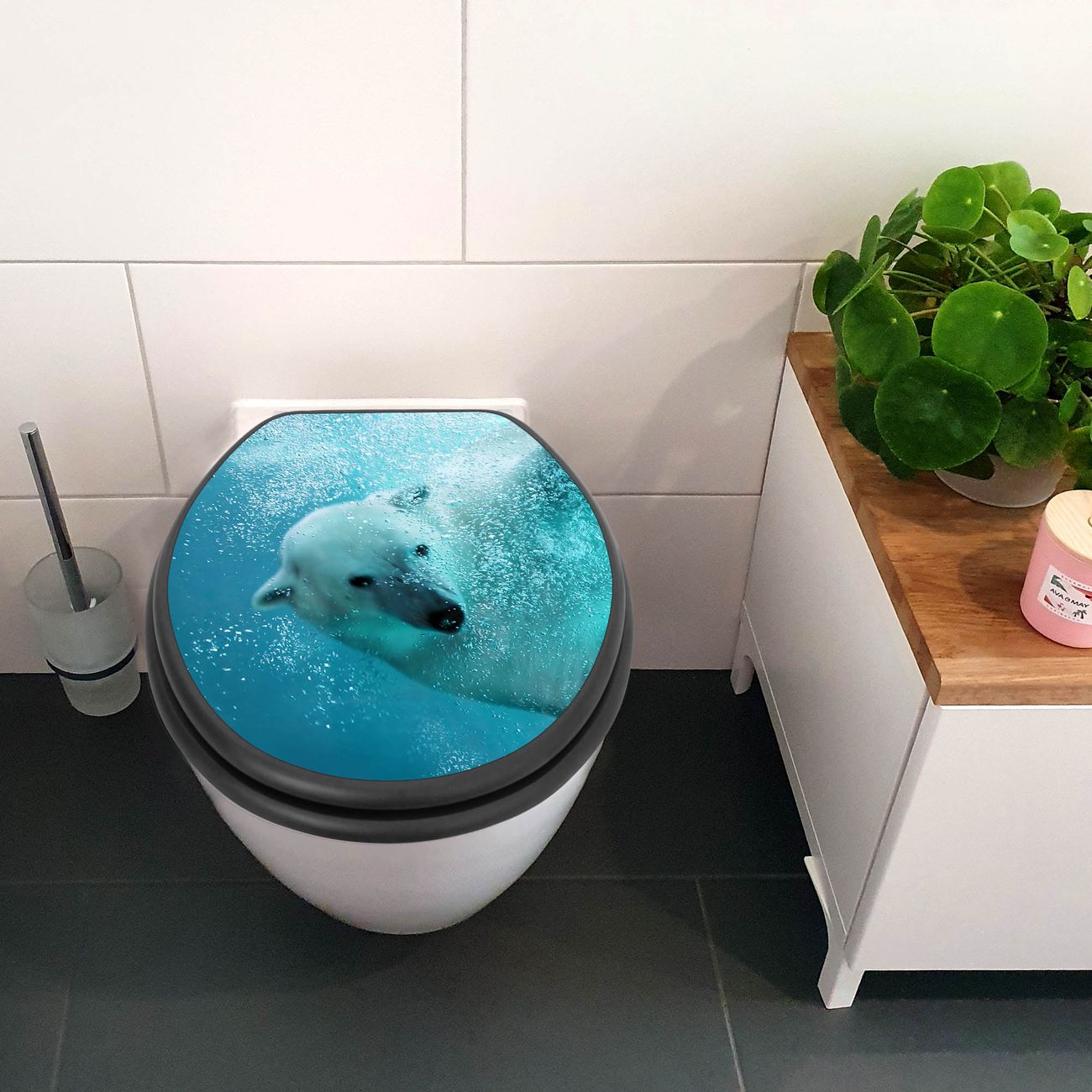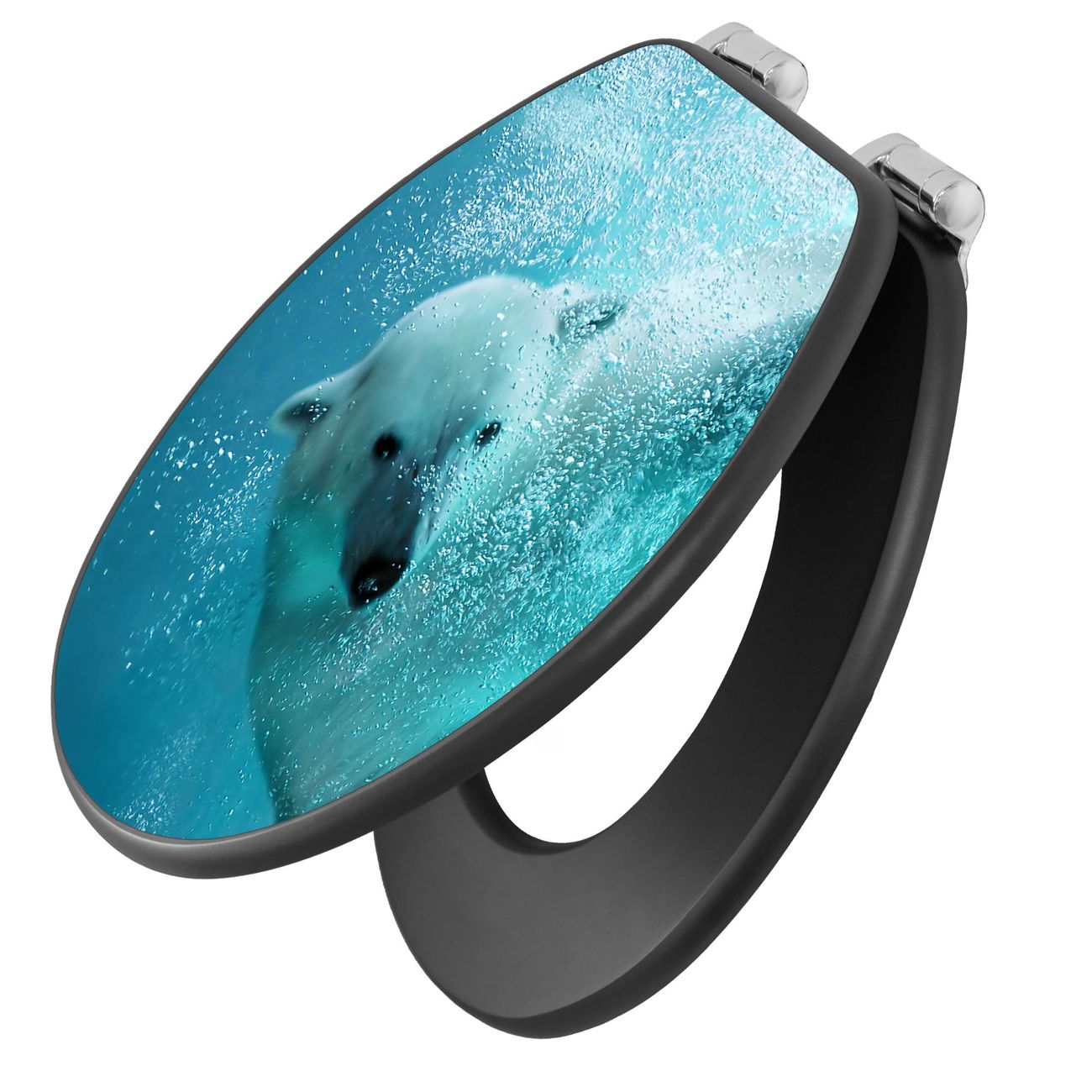 WC Sitz Anthrazit mit Absenkautomatik Motiv Tauchender Eisbär