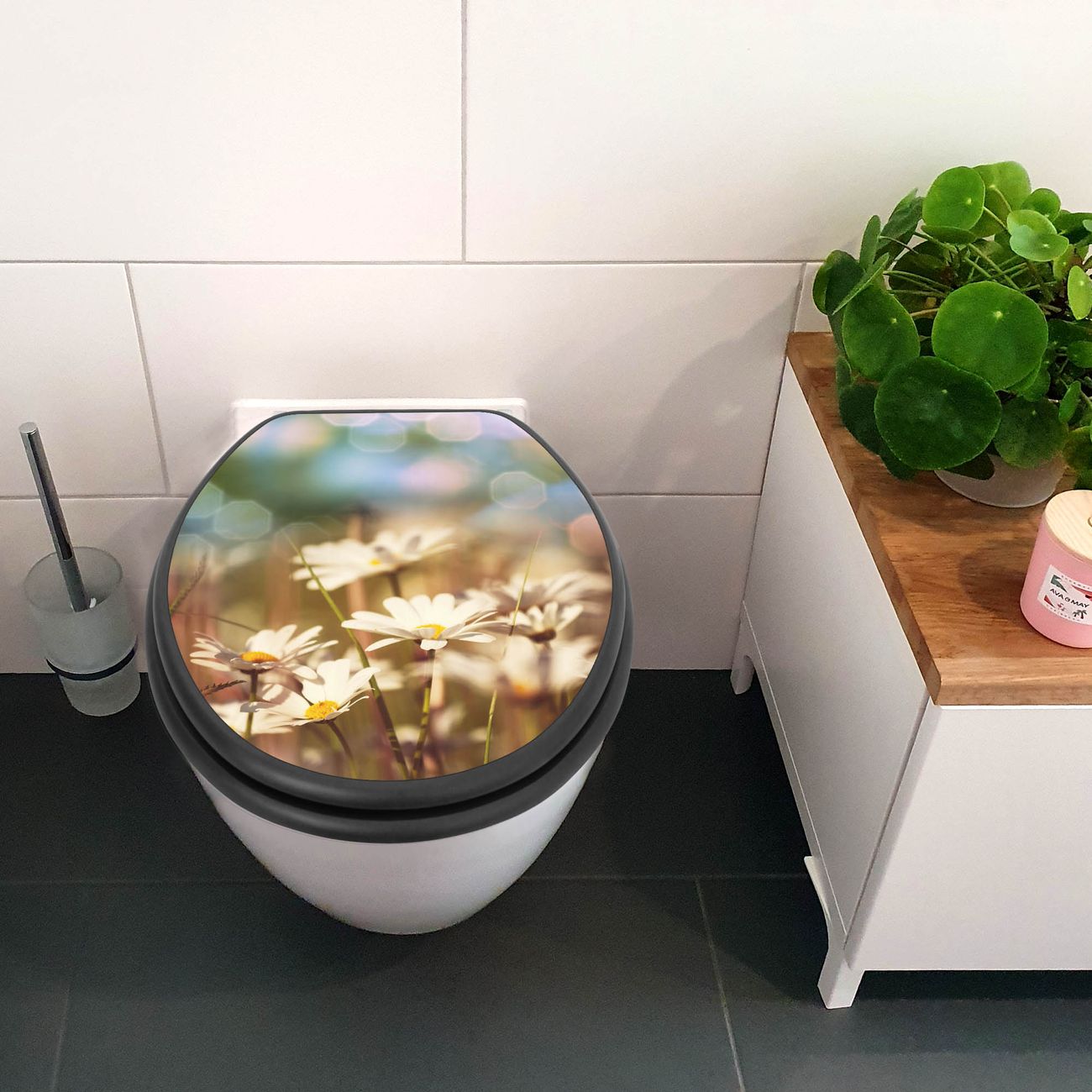 WC Sitz Anthrazit mit Absenkautomatik Motiv Tausendschönwiese