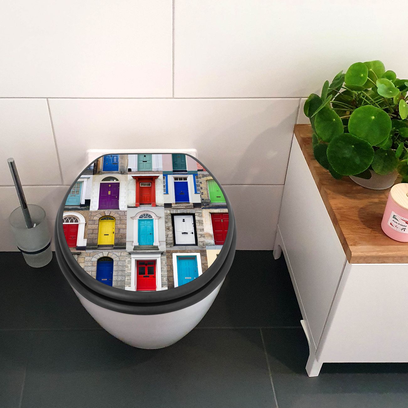 WC Sitz Anthrazit mit Absenkautomatik Motiv Türen