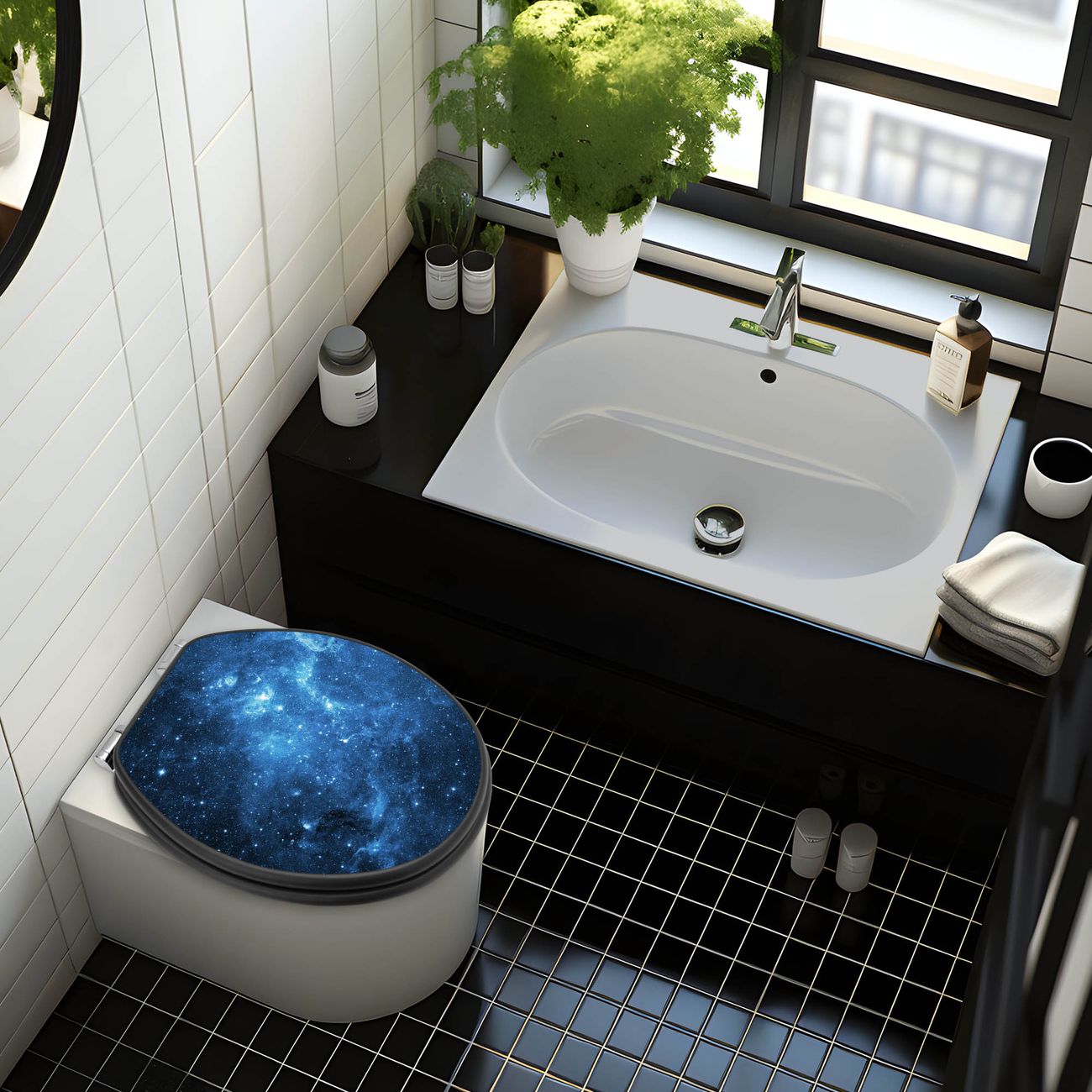 WC Sitz Anthrazit mit Absenkautomatik Motiv Universum