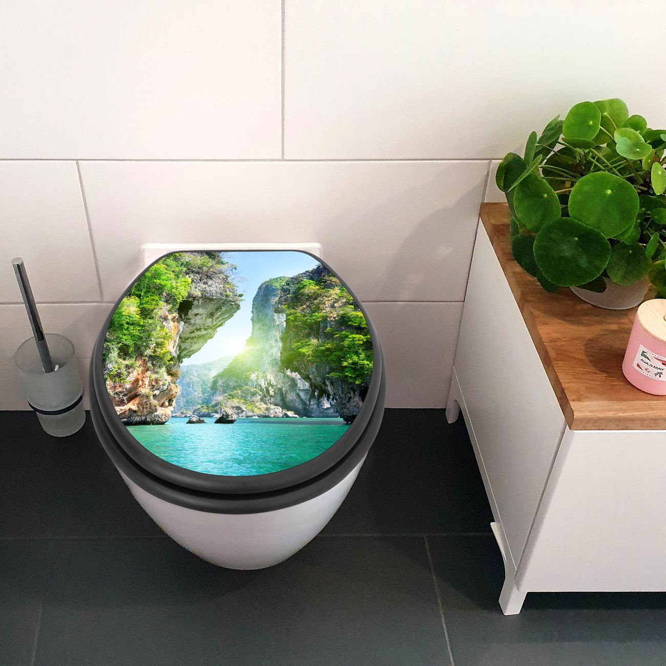 WC Sitz Anthrazit mit Absenkautomatik Motiv Versteckte Bucht