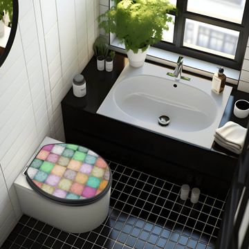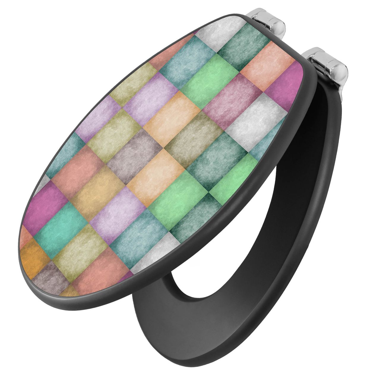 WC Sitz Anthrazit mit Absenkautomatik Motiv Verwaschene Quadrate