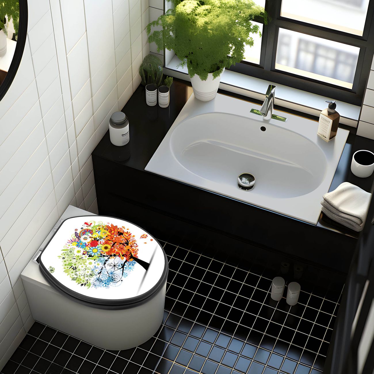 WC Sitz Anthrazit mit Absenkautomatik Motiv Vier Jahreszeiten