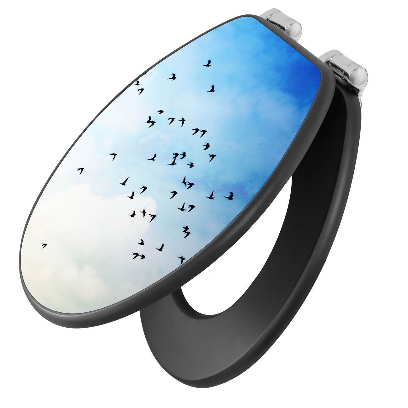 WC Sitz Anthrazit mit Absenkautomatik Motiv Vögel am Himmel 2