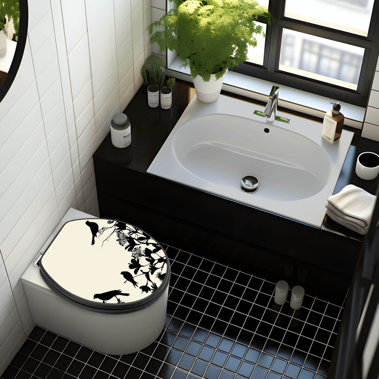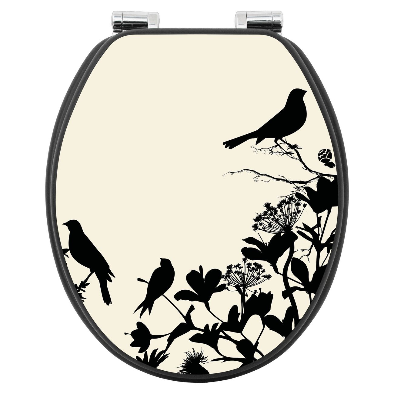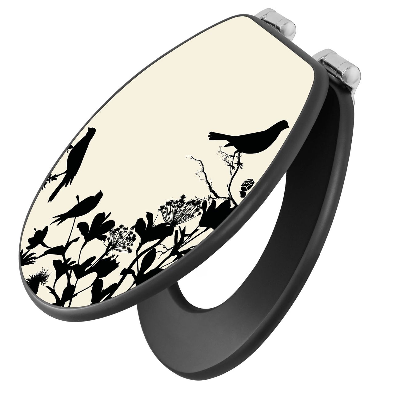 WC Sitz Anthrazit mit Absenkautomatik Motiv Vögel Schattenriß