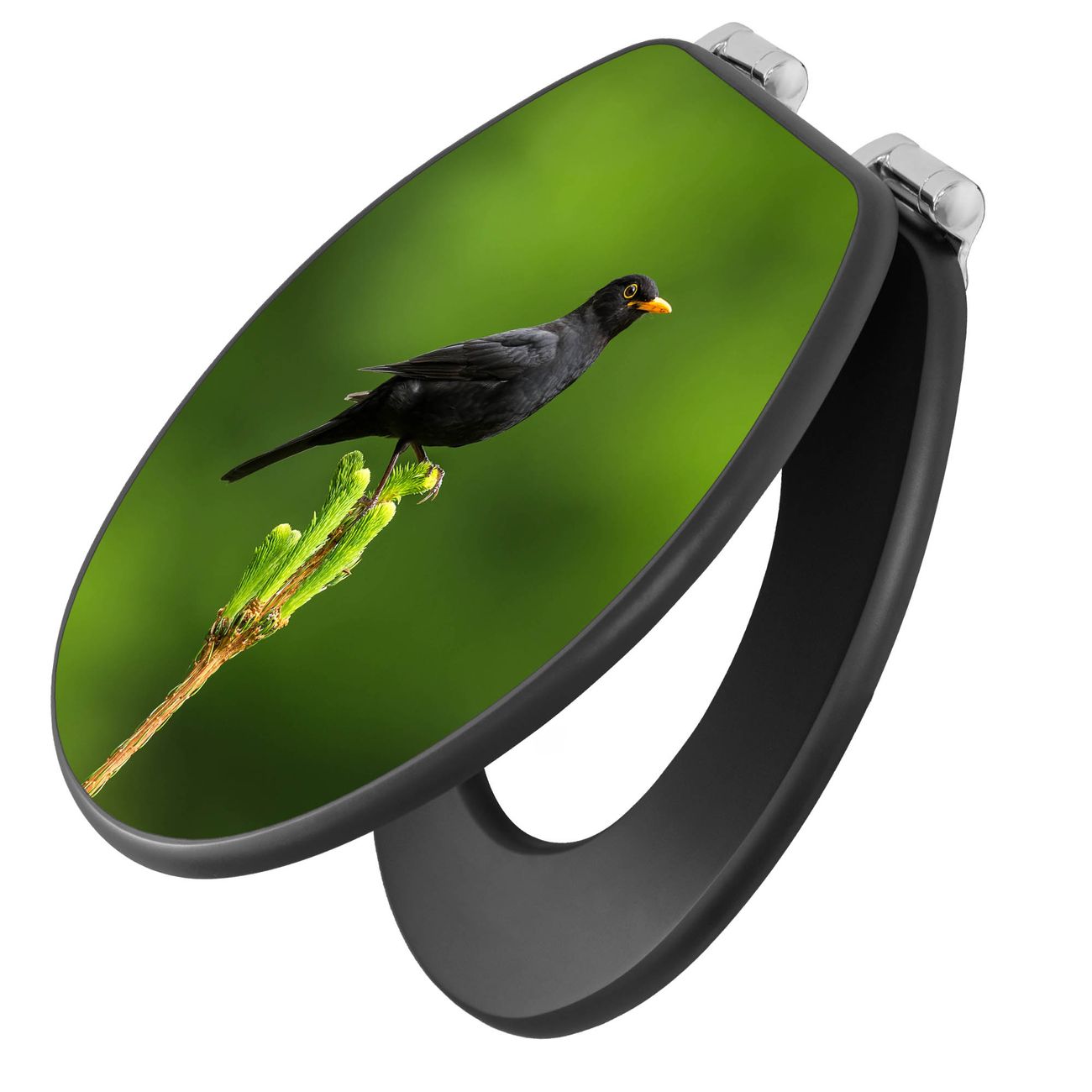 WC Sitz Anthrazit mit Absenkautomatik Motiv Vogel auf Tannenzweig