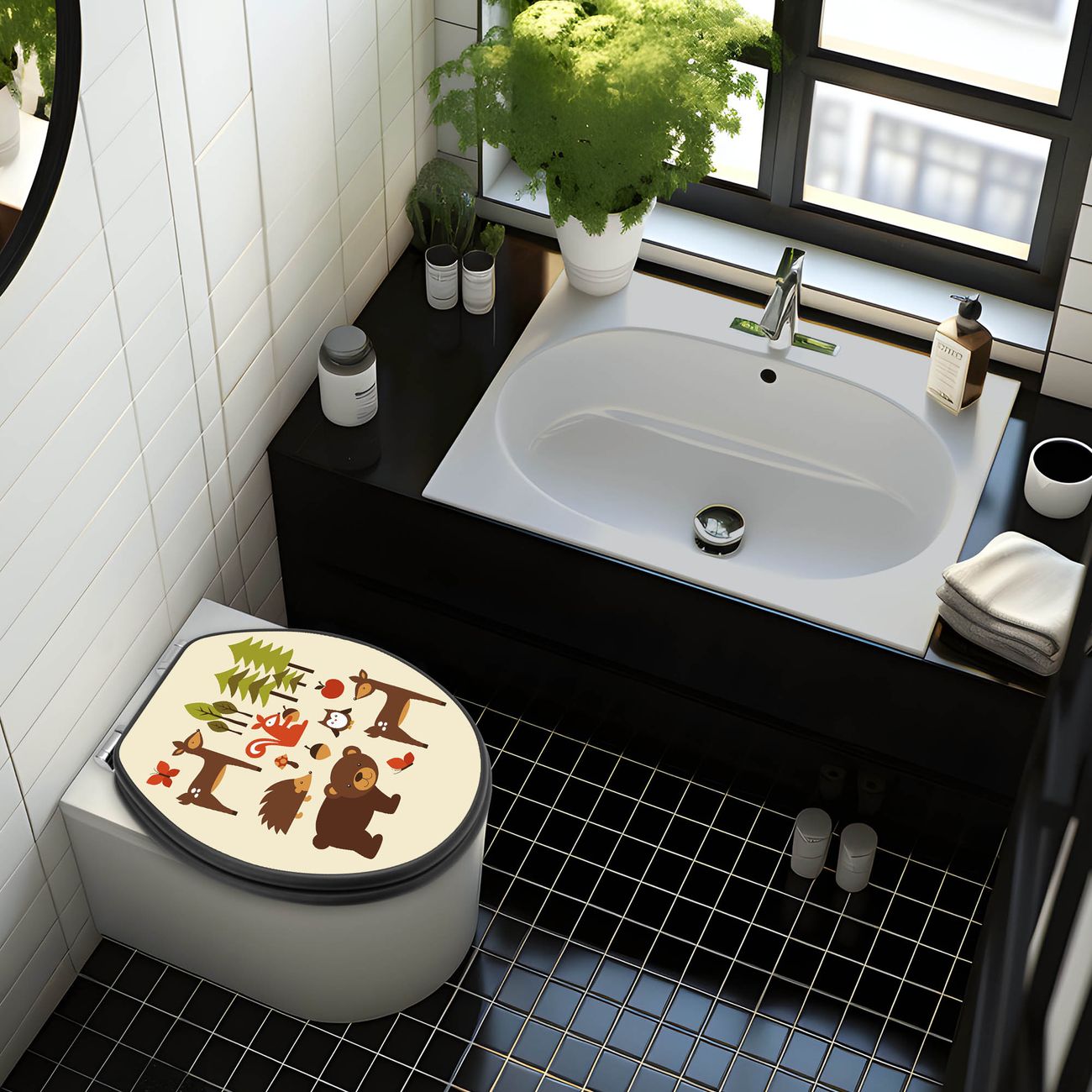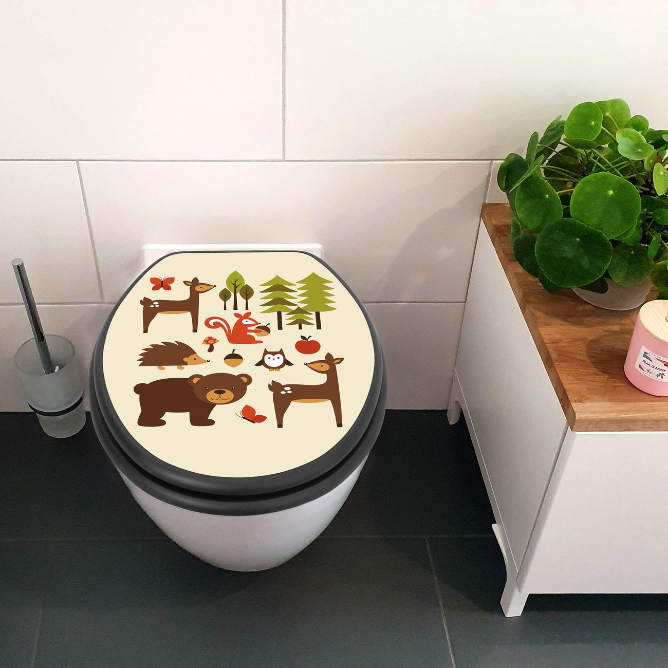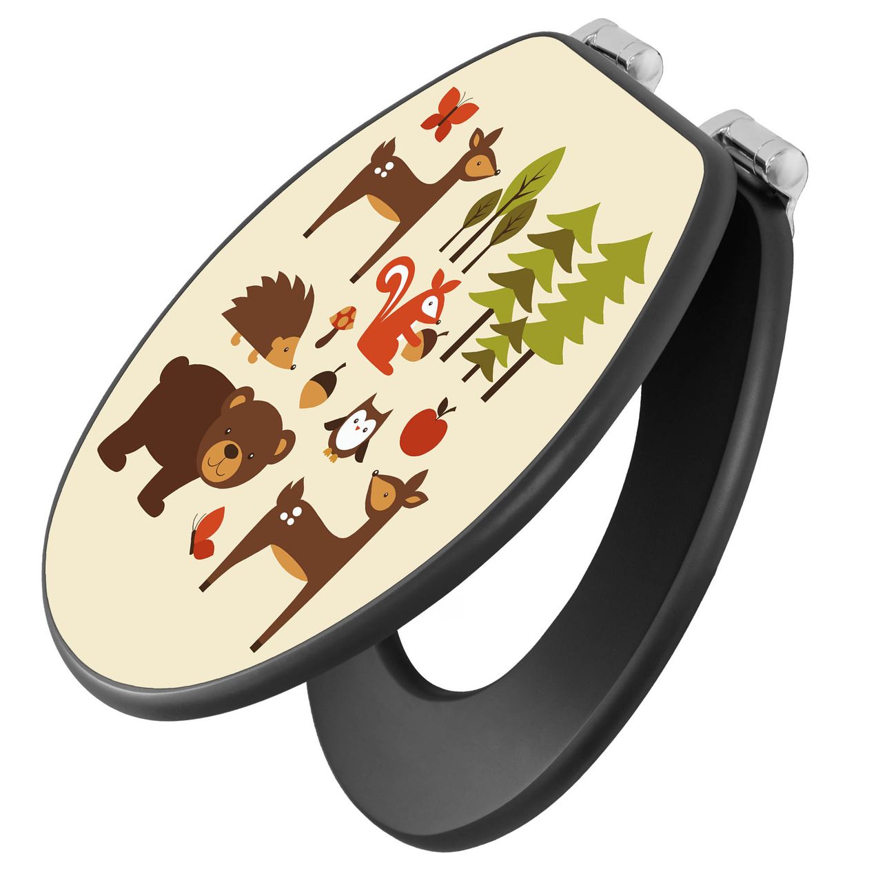 WC Sitz Anthrazit mit Absenkautomatik Motiv Waldfreunde