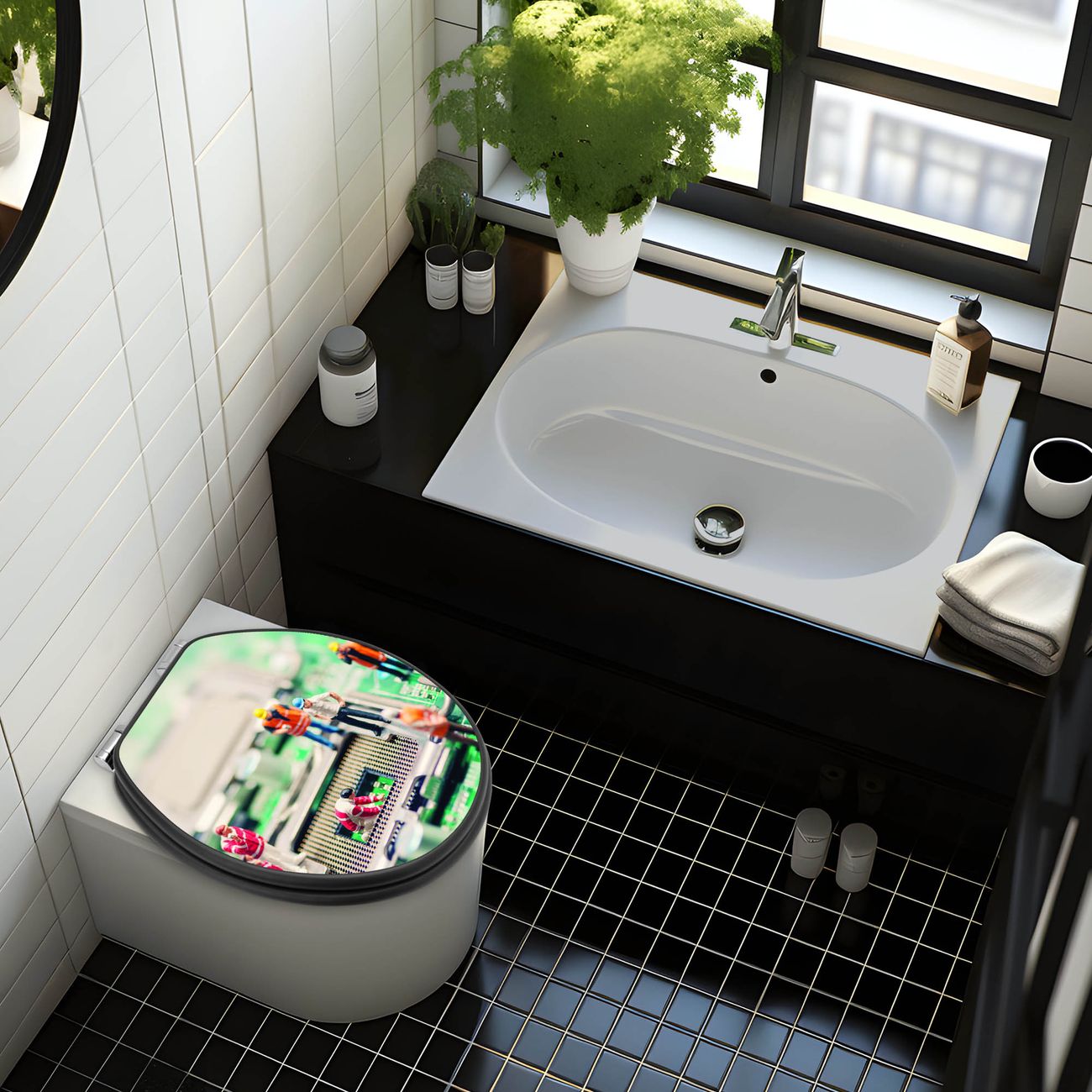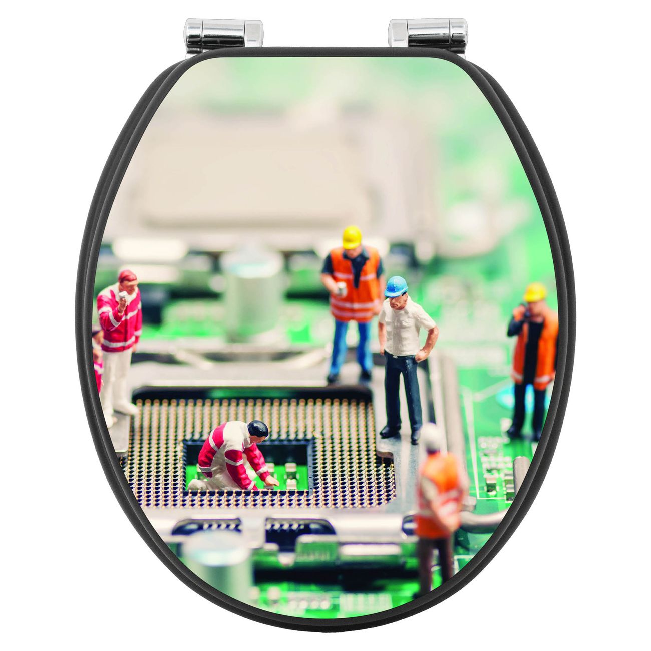 WC Sitz Anthrazit mit Absenkautomatik Motiv Wartungsarbeiten