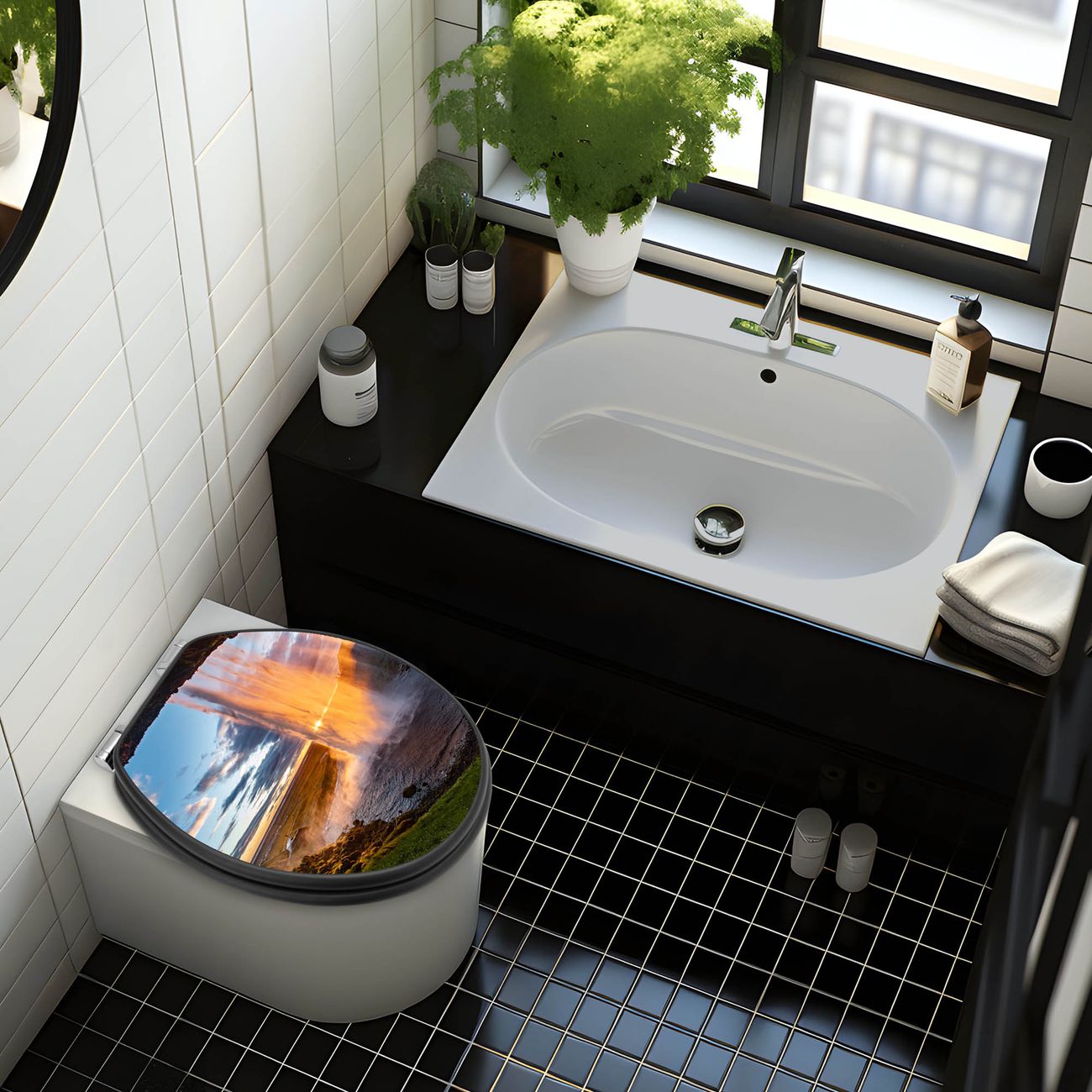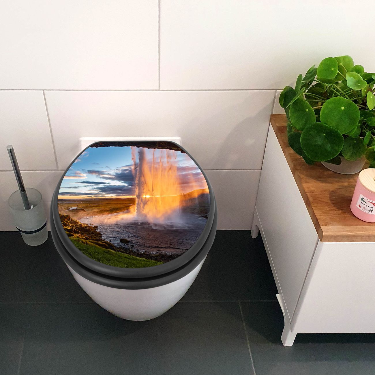 WC Sitz Anthrazit mit Absenkautomatik Motiv Wasserfall im Sonnenlicht