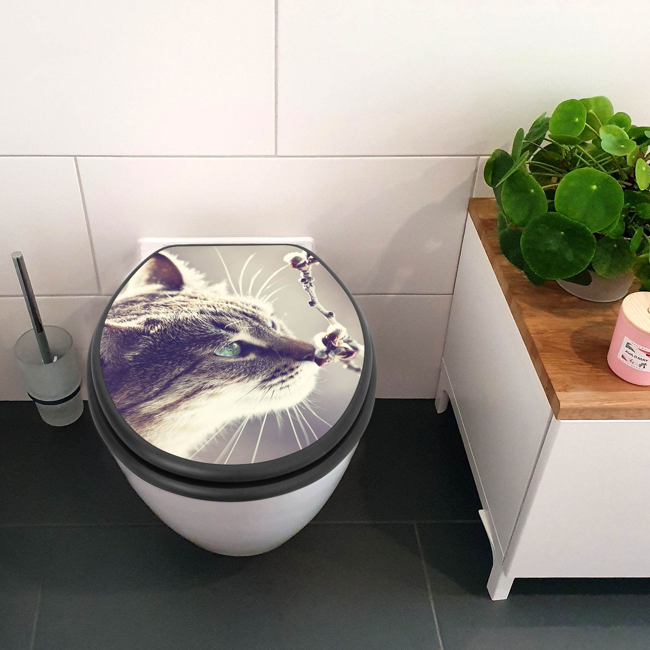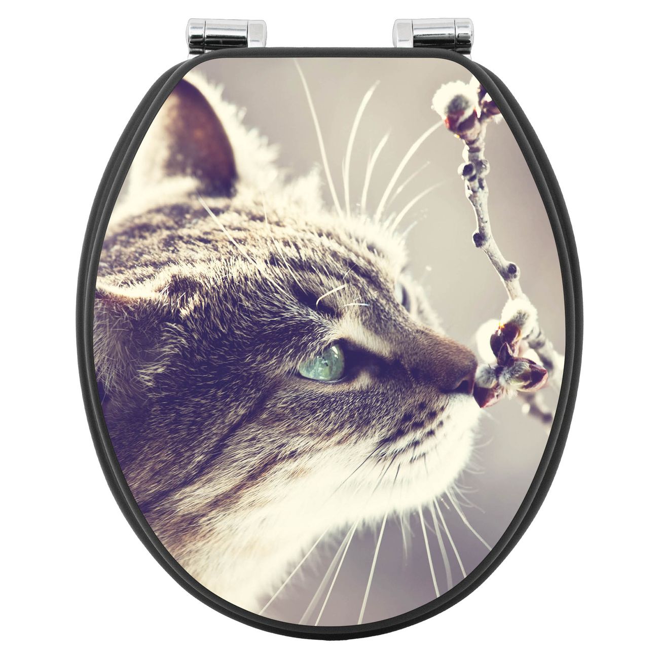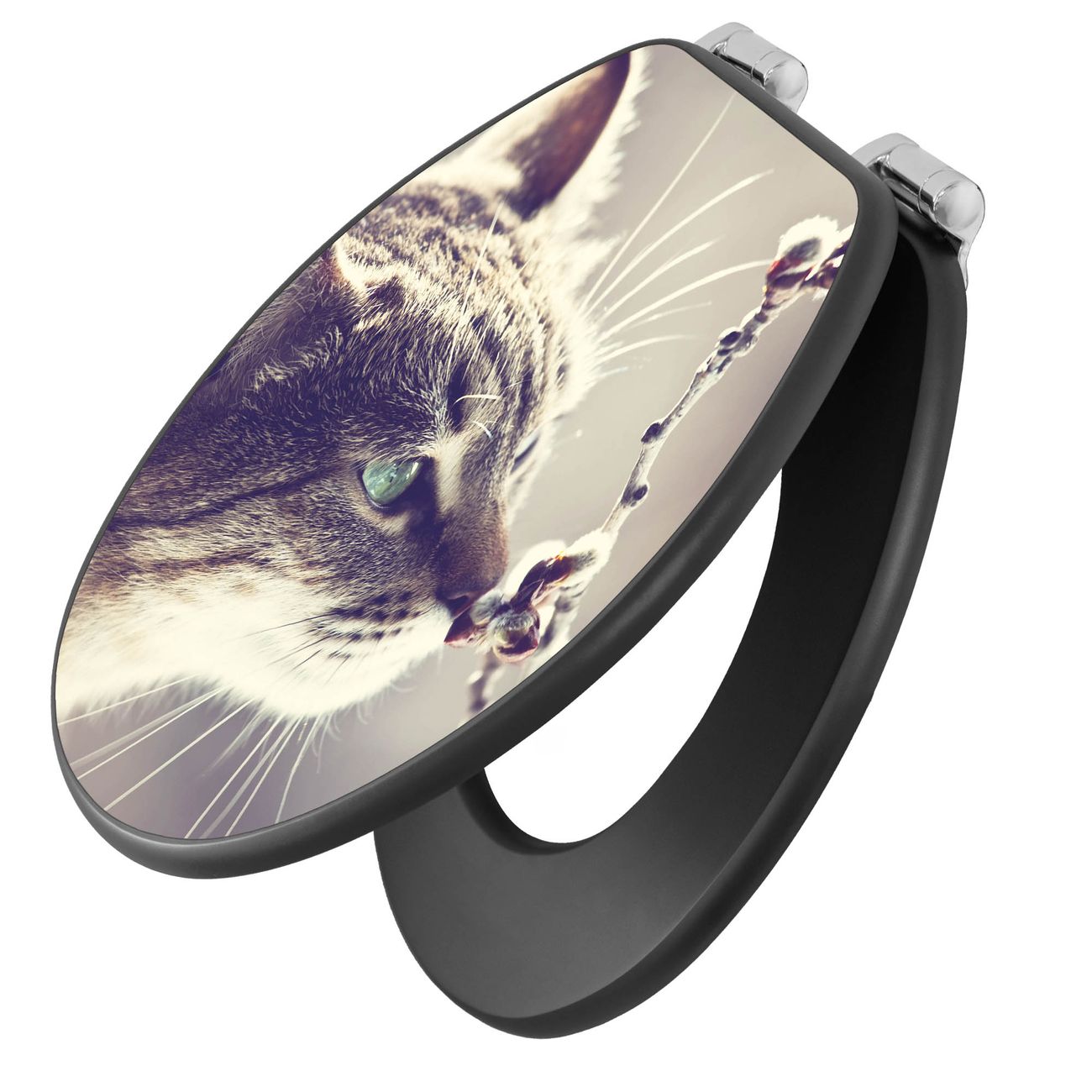 WC Sitz Anthrazit mit Absenkautomatik Motiv Weidenkätzchen