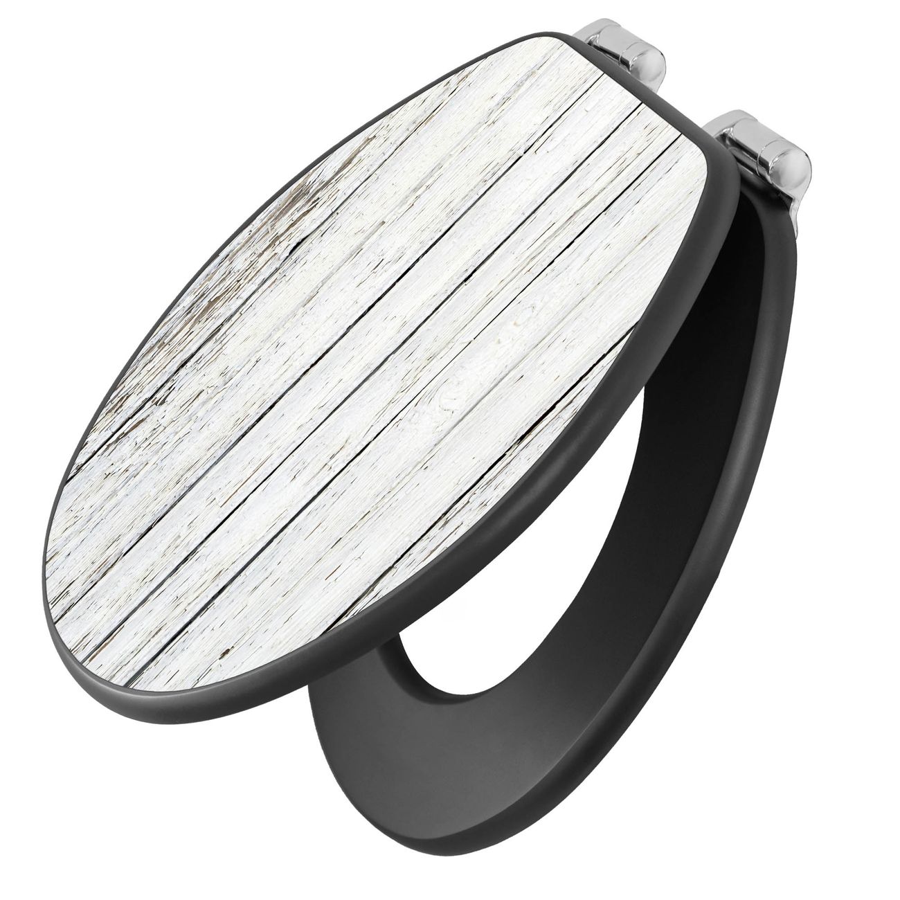 WC Sitz Anthrazit mit Absenkautomatik Motiv Weißer Bretterzaun