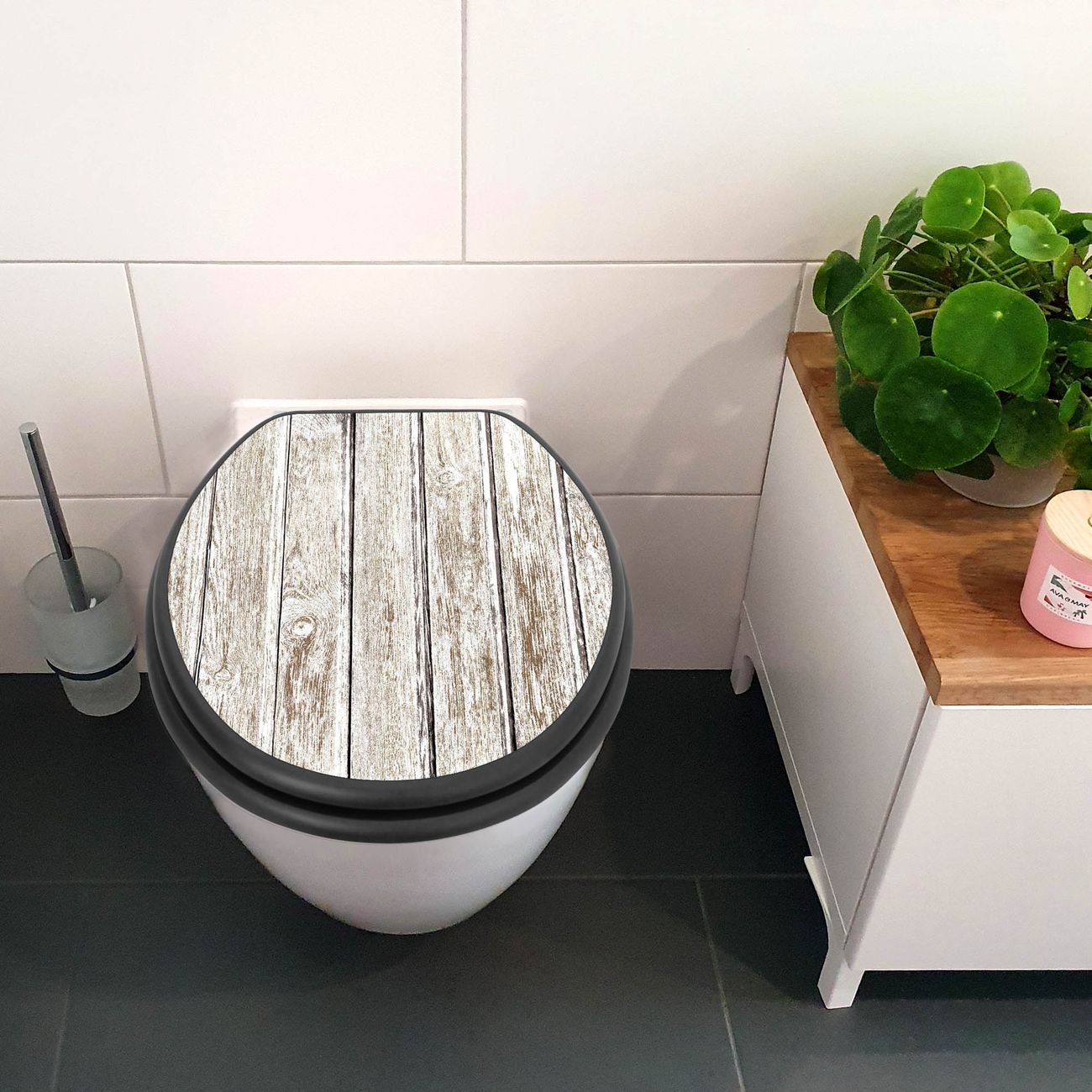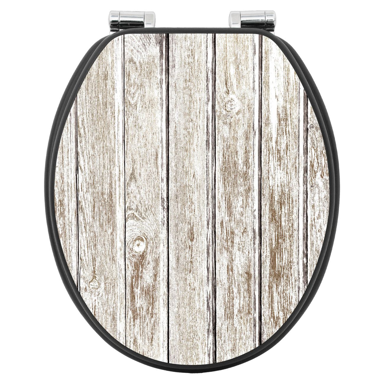 WC Sitz Anthrazit mit Absenkautomatik Motiv Weißes Holz