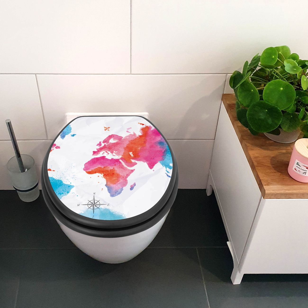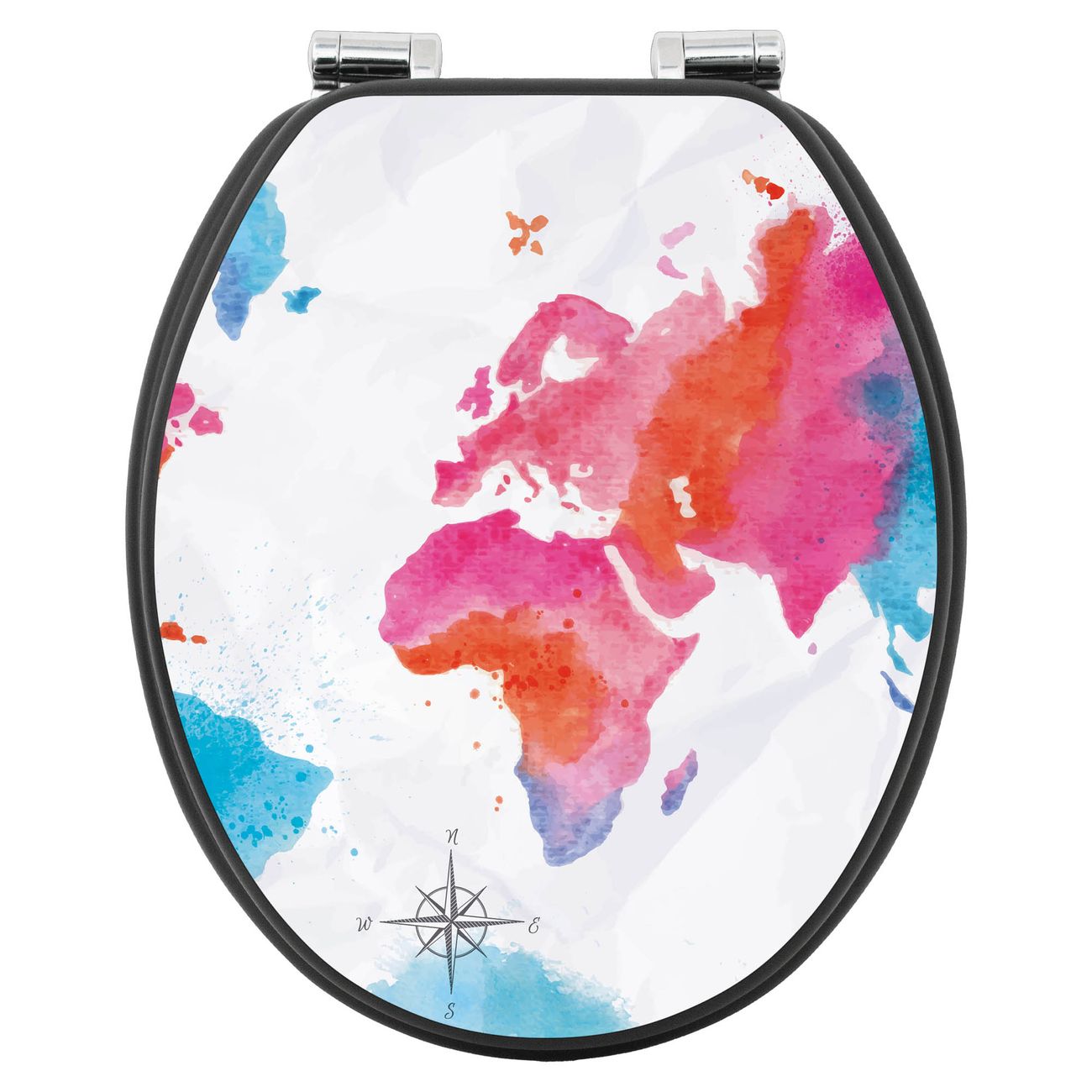 WC Sitz Anthrazit mit Absenkautomatik Motiv Weltkarte pastell