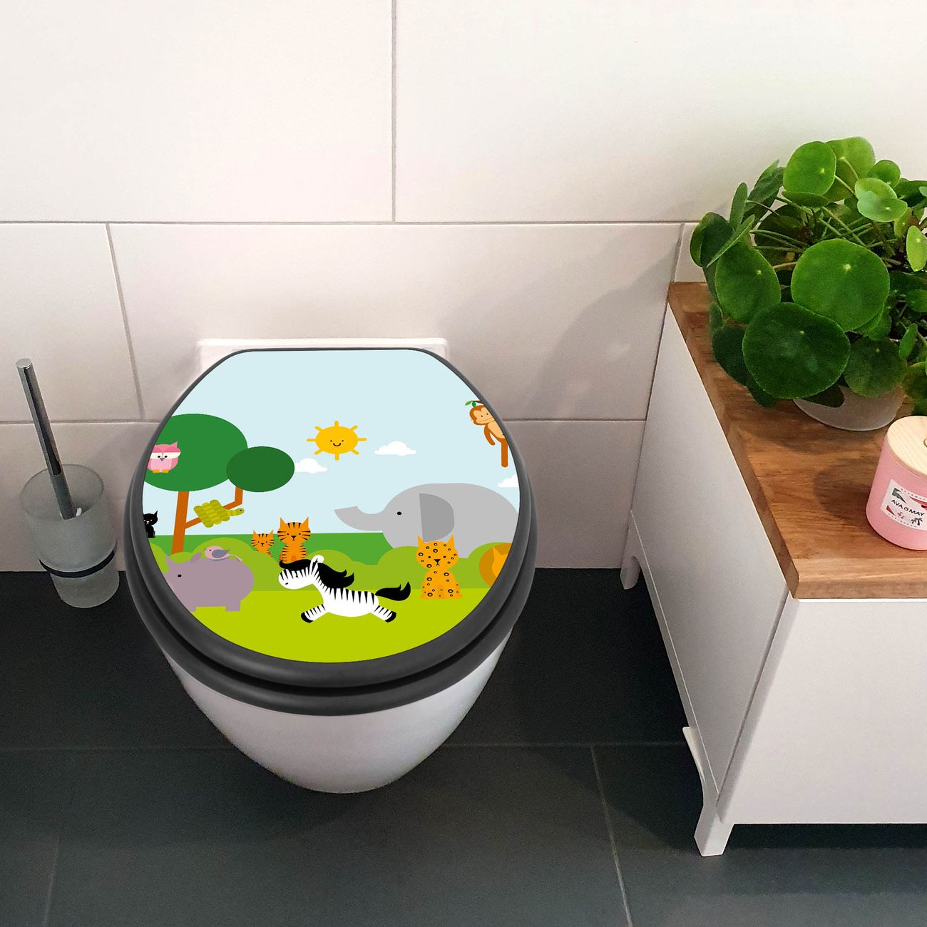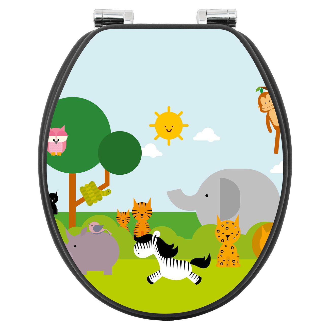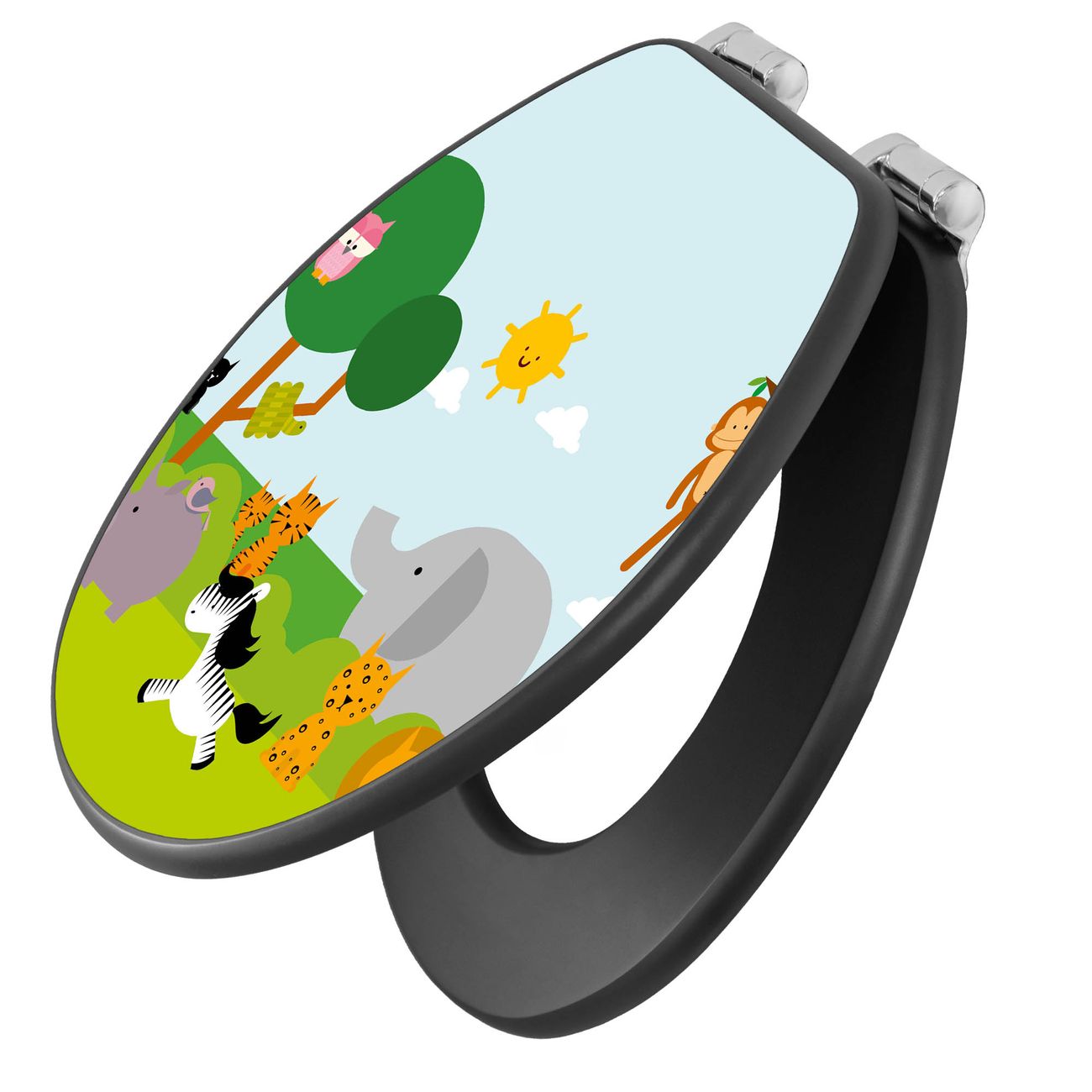 WC Sitz Anthrazit mit Absenkautomatik Motiv Wilde Tiere