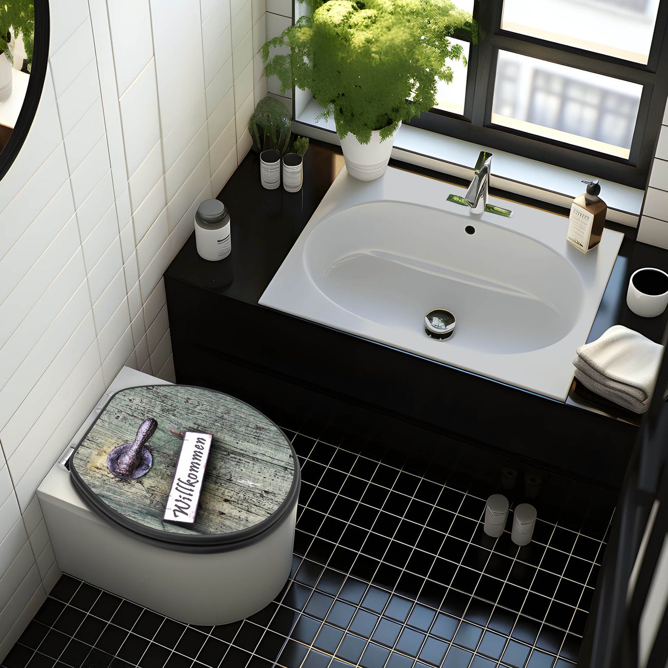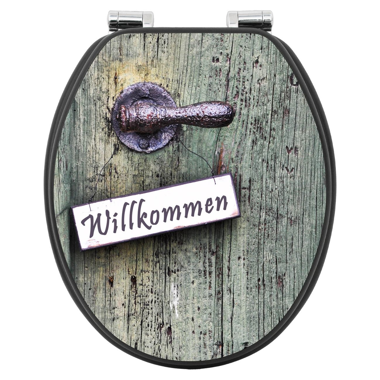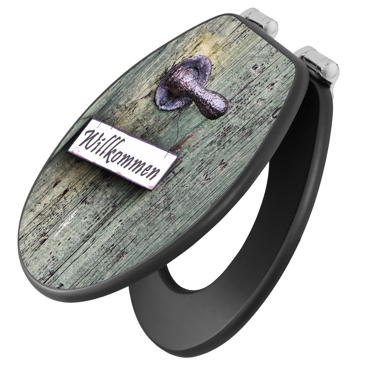 WC Sitz Anthrazit mit Absenkautomatik Motiv Willkommen