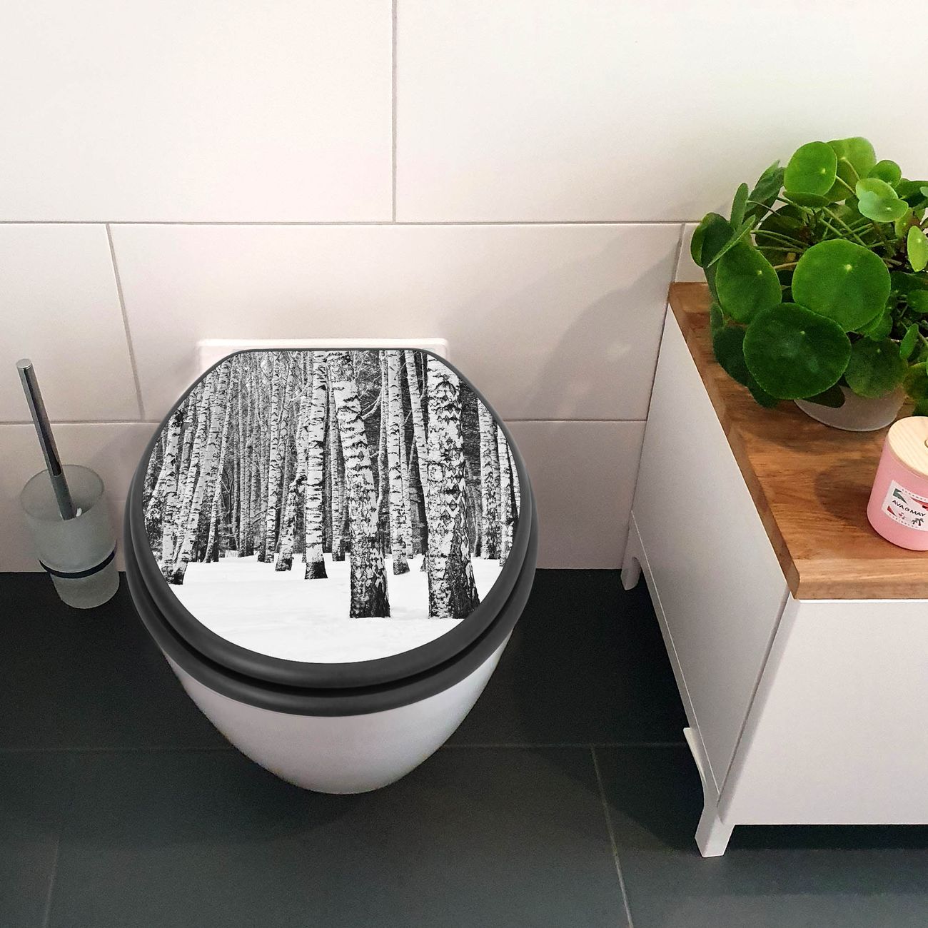 WC Sitz Anthrazit mit Absenkautomatik Motiv Winterlicher Birkenwald