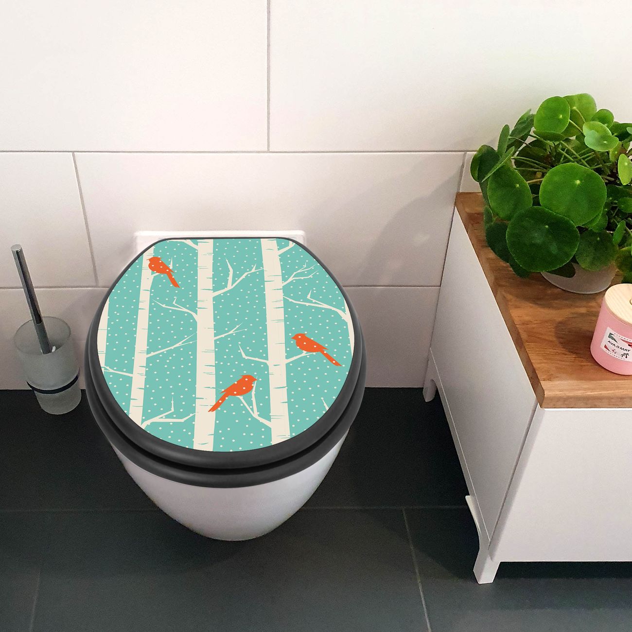 WC Sitz Anthrazit mit Absenkautomatik Motiv Wintervögel