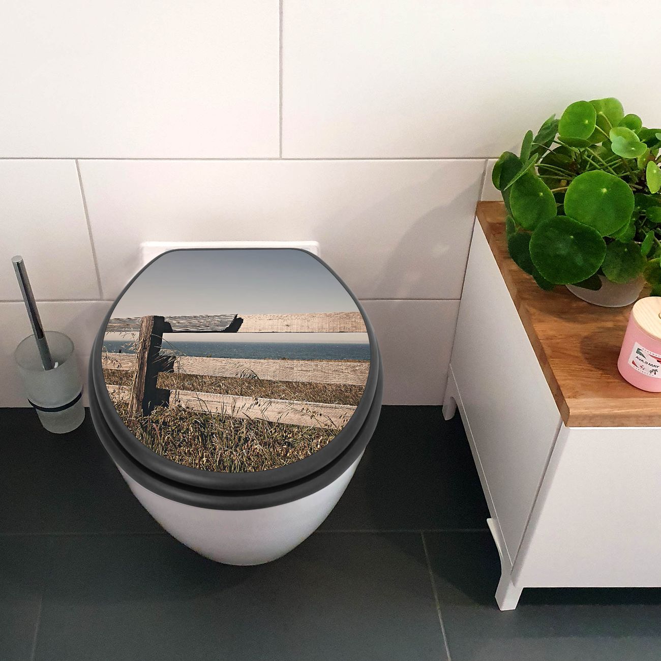 WC Sitz Anthrazit mit Absenkautomatik Motiv Zaun am Meer