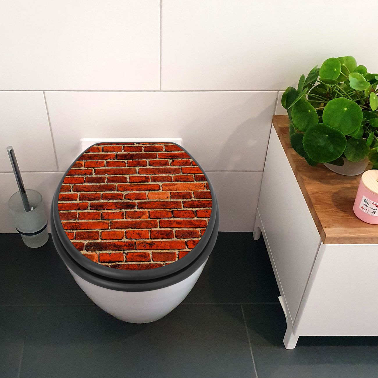 WC Sitz Anthrazit mit Absenkautomatik Motiv Ziegelwand