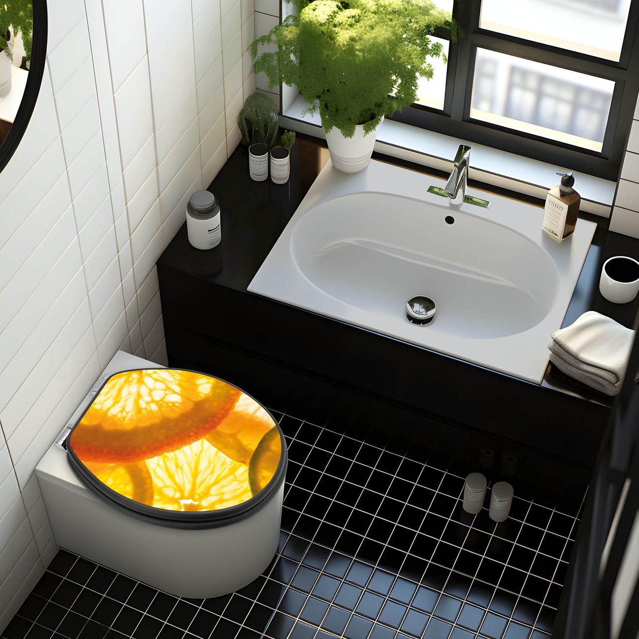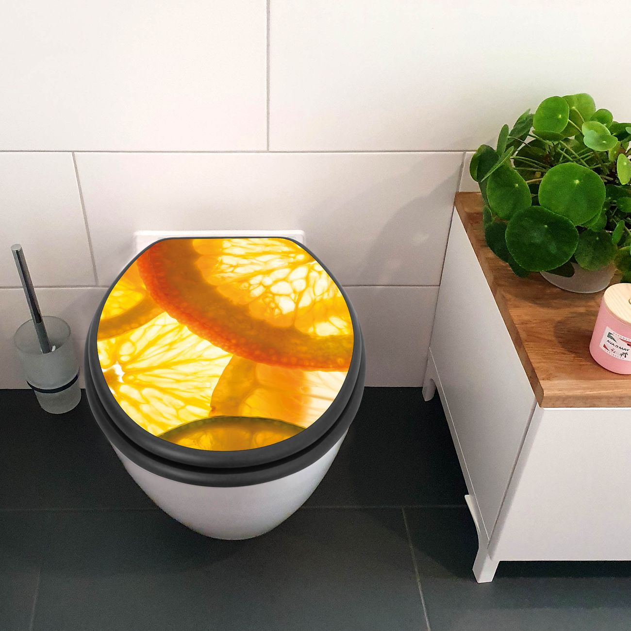 WC Sitz Anthrazit mit Absenkautomatik Motiv Zitrusfrüchte