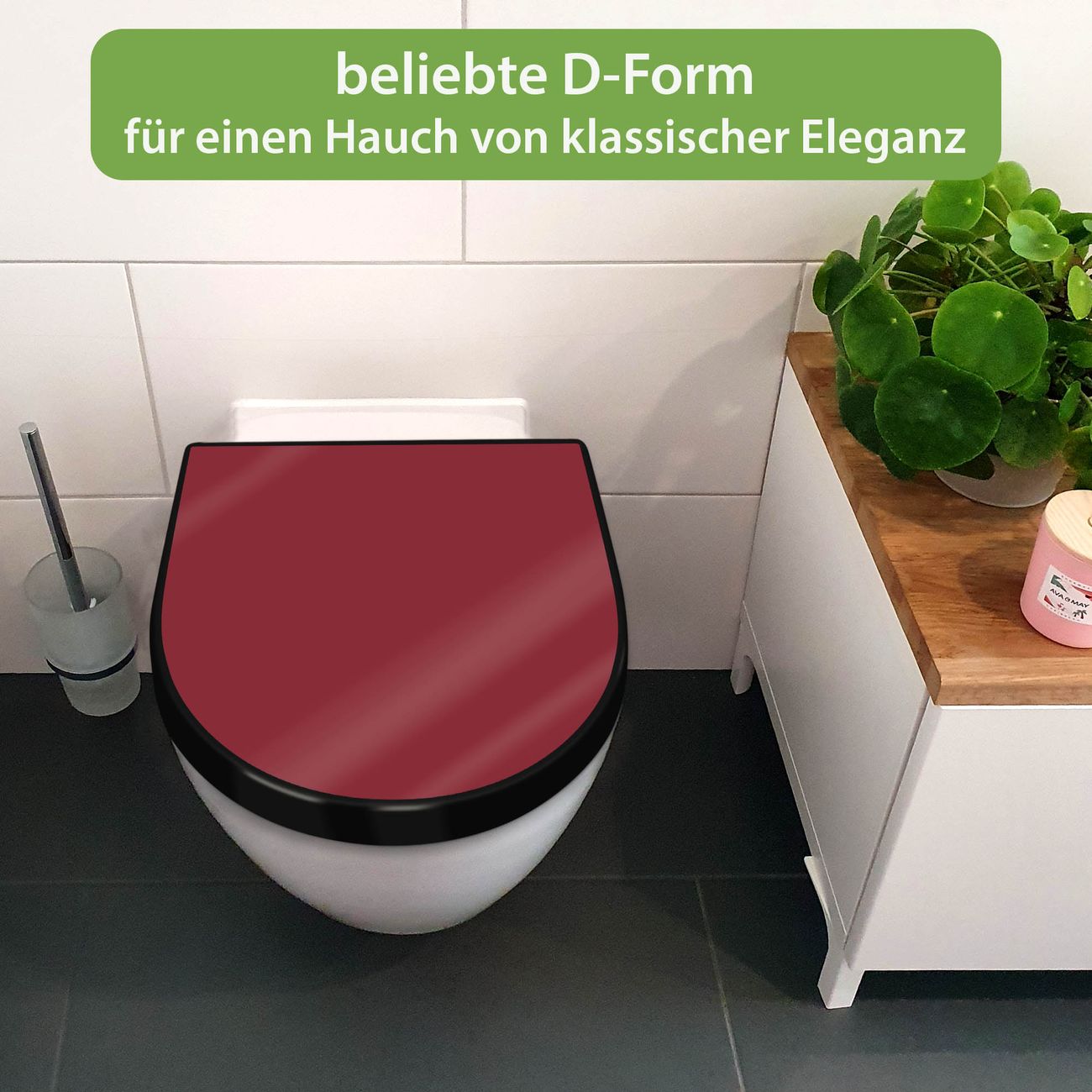 WC Sitz D-Form Schwarz mit Absenkautomatik Farbe Burgund