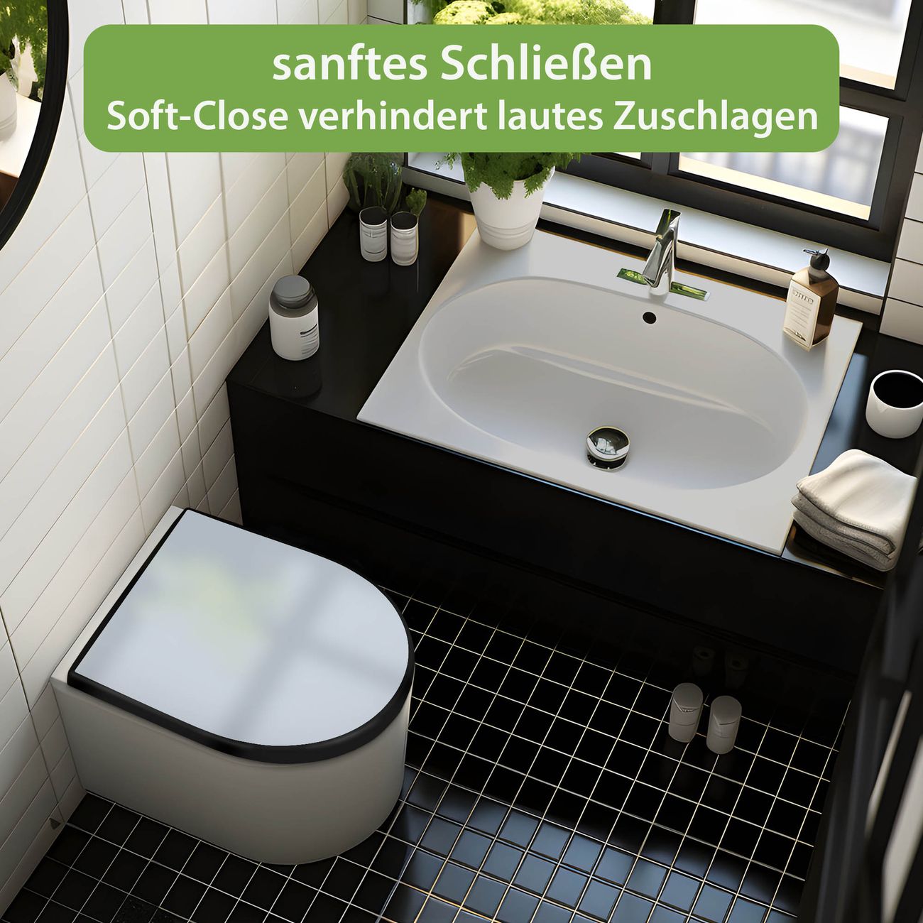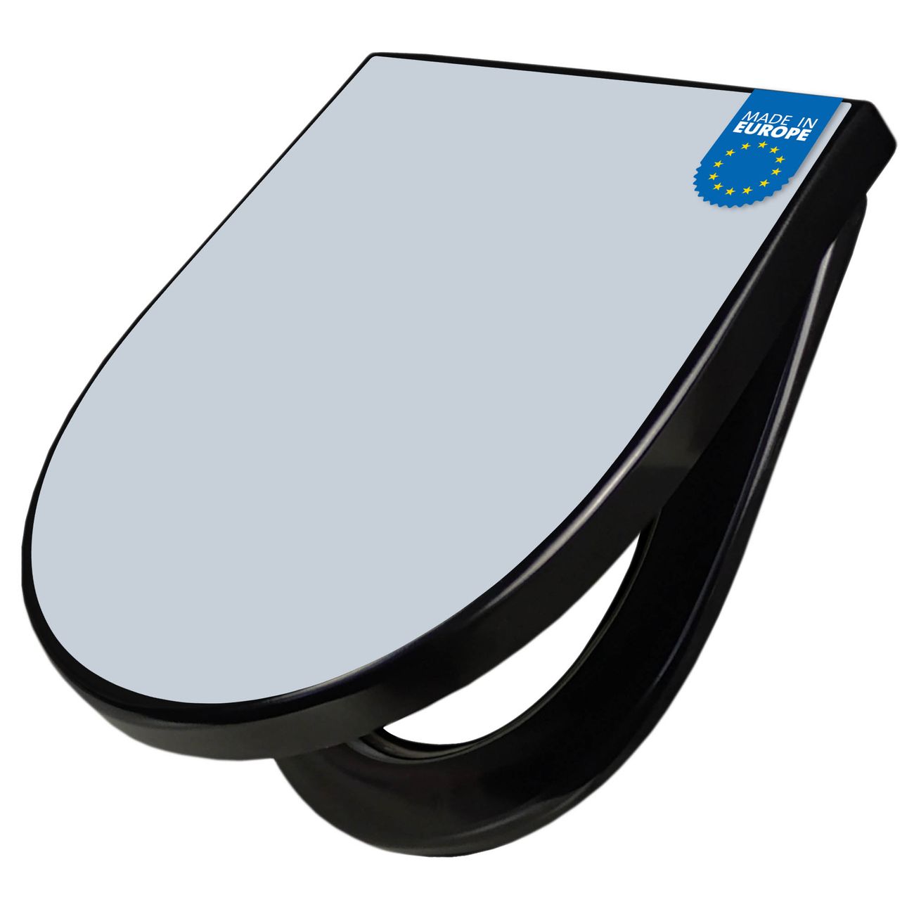 WC Sitz D-Form Schwarz mit Absenkautomatik Farbe Eisblau
