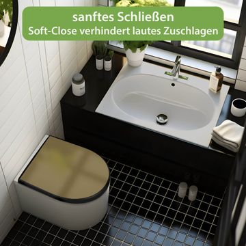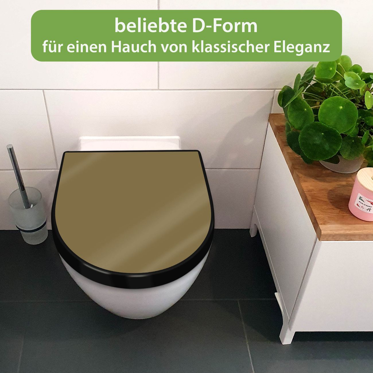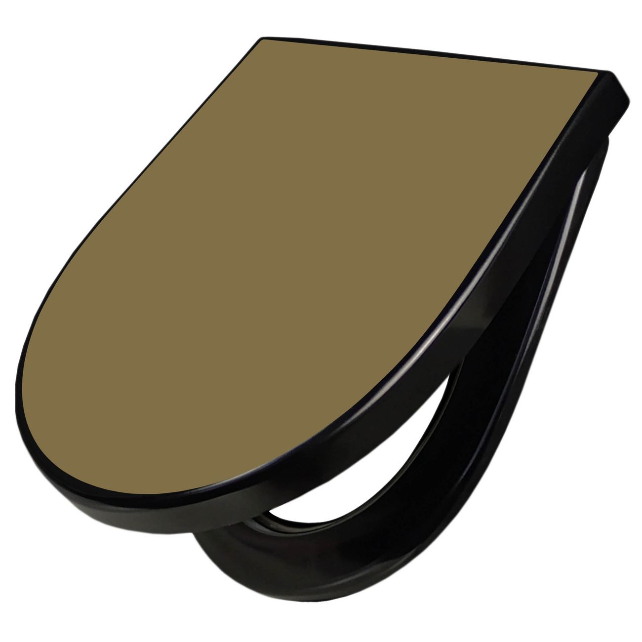 WC Sitz D-Form Schwarz mit Absenkautomatik Farbe Gold Metallic