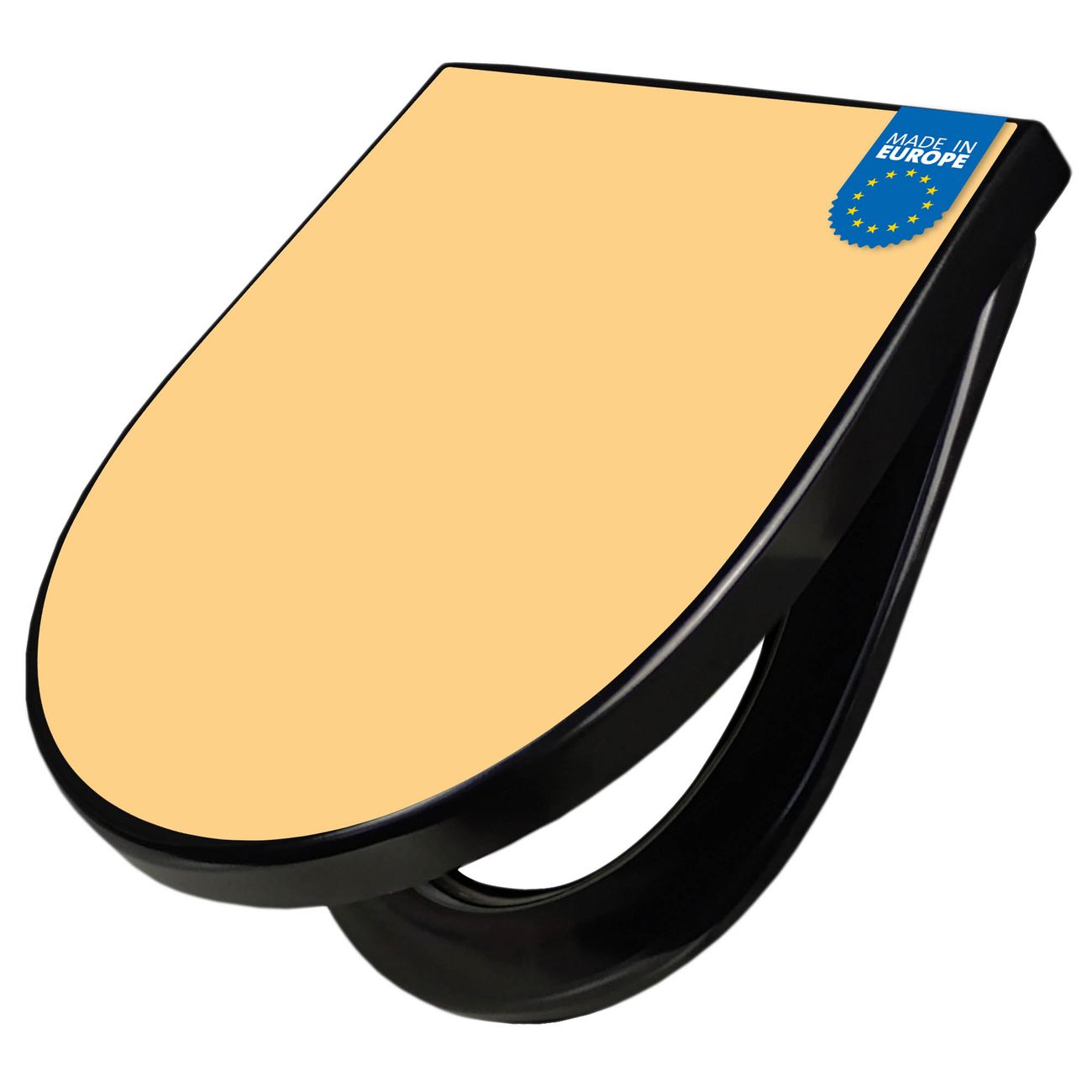 WC Sitz D-Form Schwarz mit Absenkautomatik Farbe Mandarine