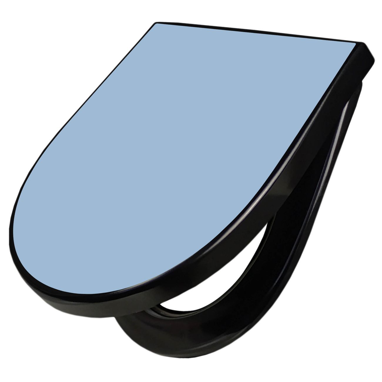 WC Sitz D-Form Schwarz mit Absenkautomatik Farbe Pastellblau