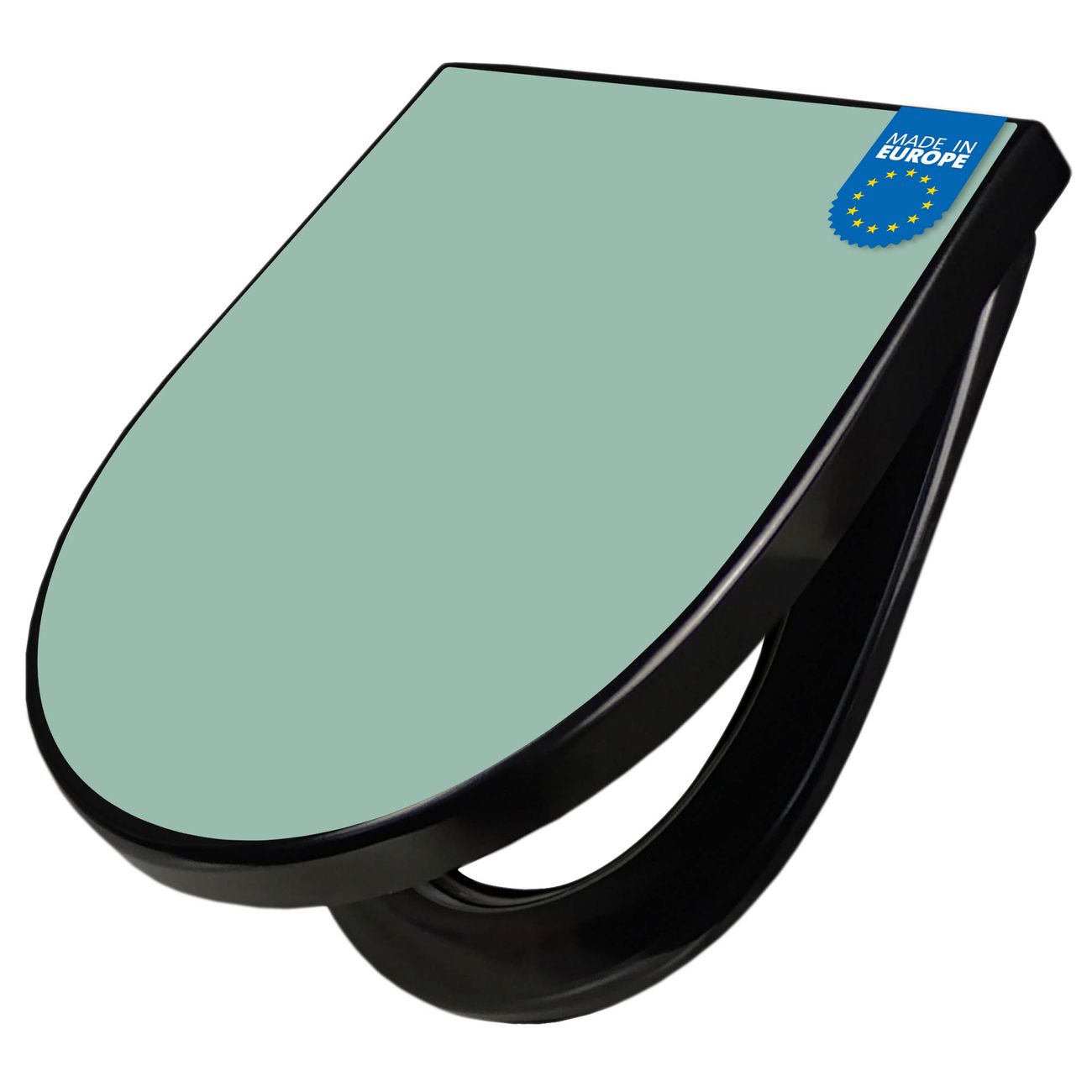 WC Sitz D-Form Schwarz mit Absenkautomatik Farbe Salbei