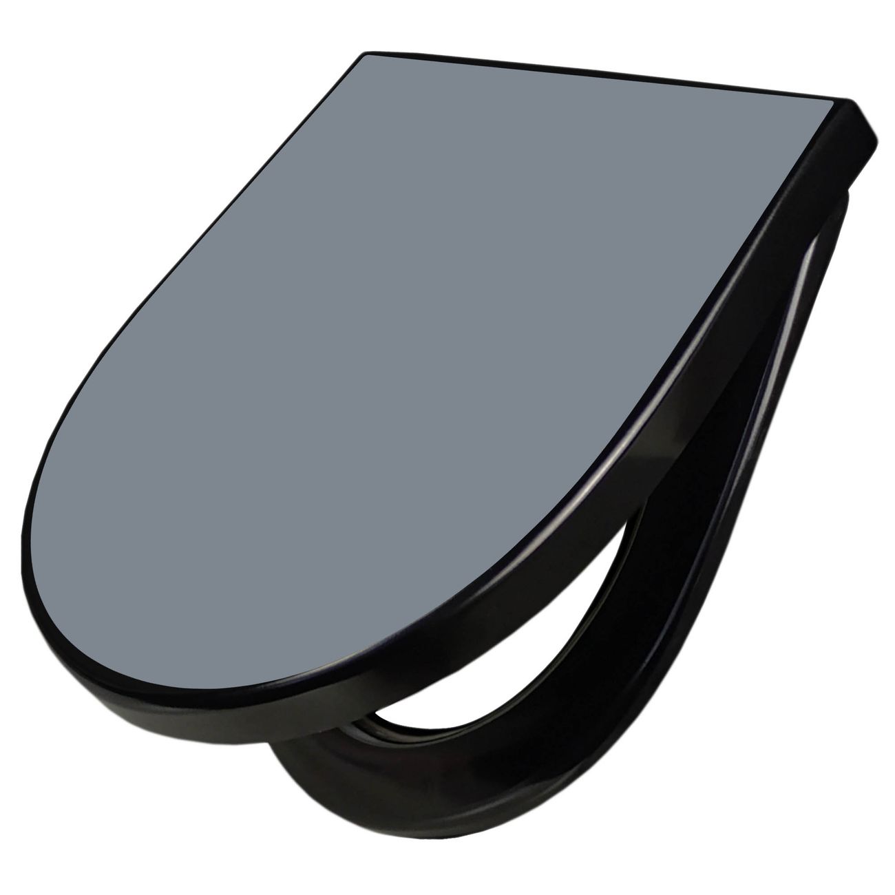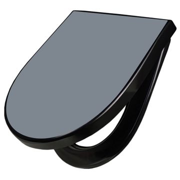 WC Sitz D-Form Schwarz mit Absenkautomatik Farbe Schiefergrau