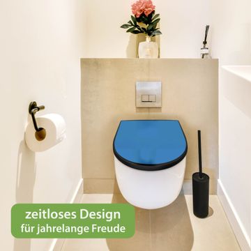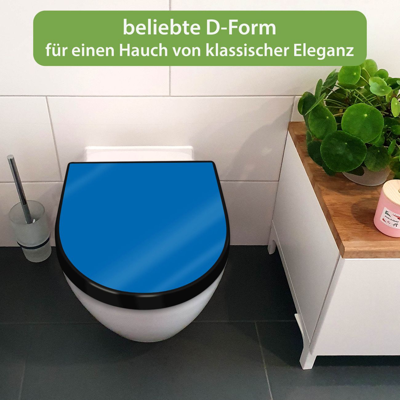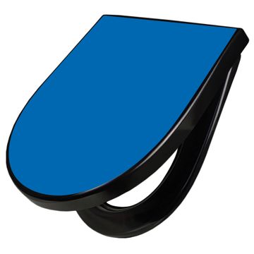 WC Sitz D-Form Schwarz mit Absenkautomatik Farbe Signalblau