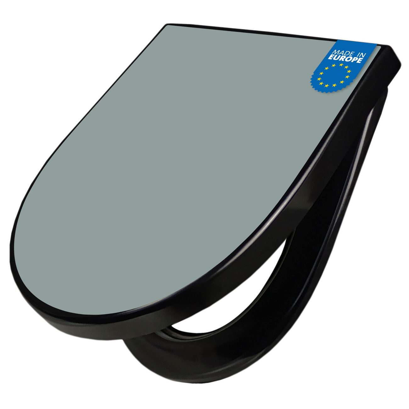 WC Sitz D-Form Schwarz mit Absenkautomatik Farbe Steingrau