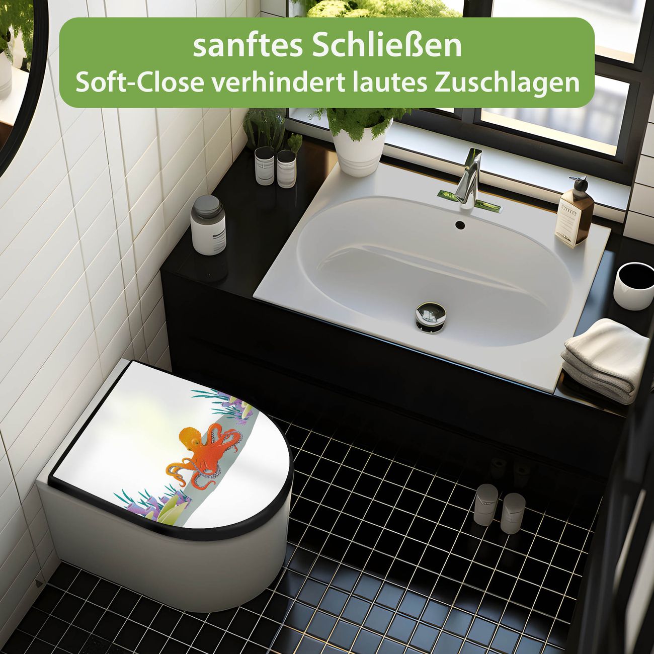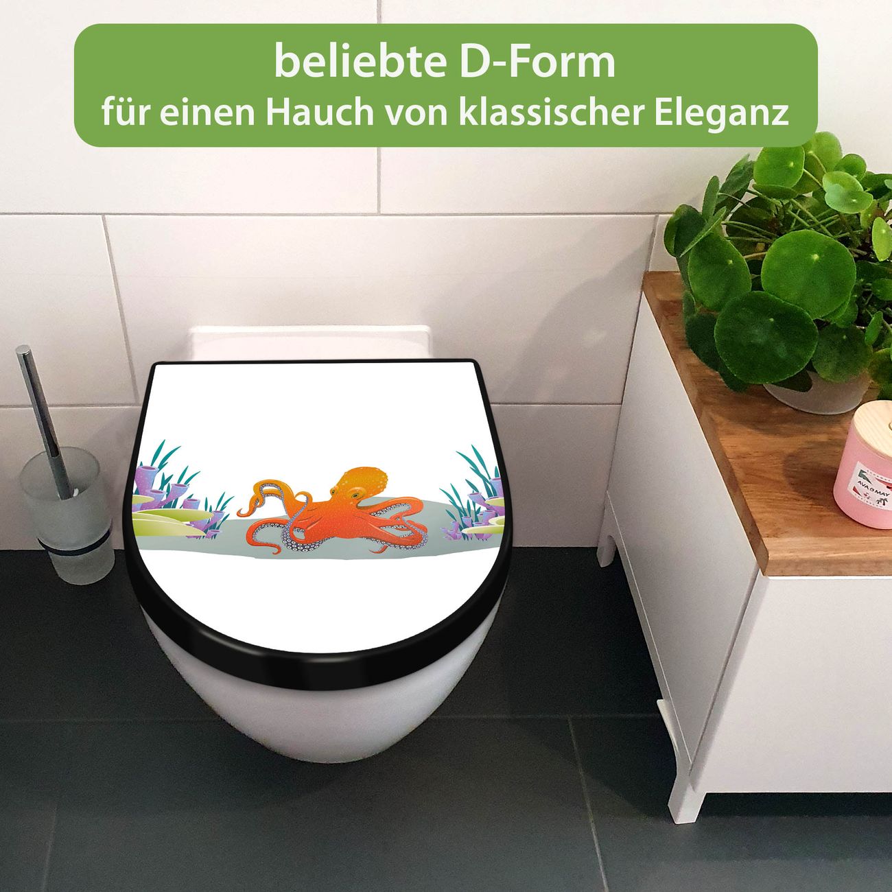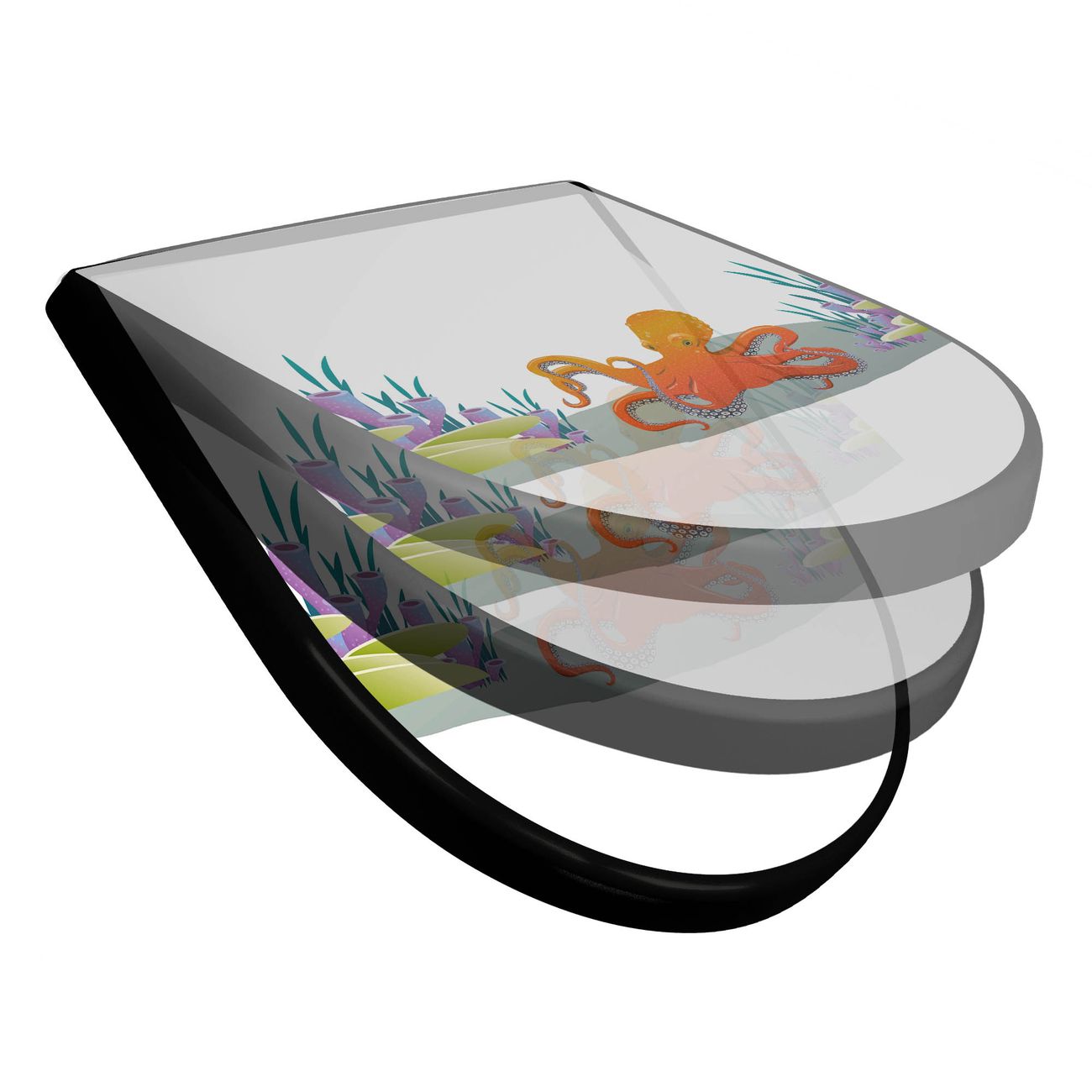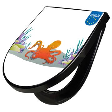 WC Sitz D-Form Schwarz mit Absenkautomatik Motiv Abenteuer im Ozean