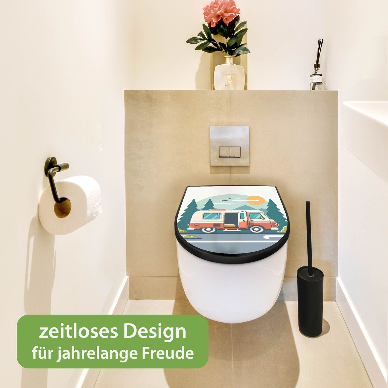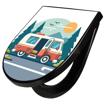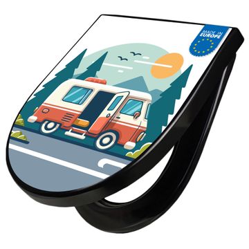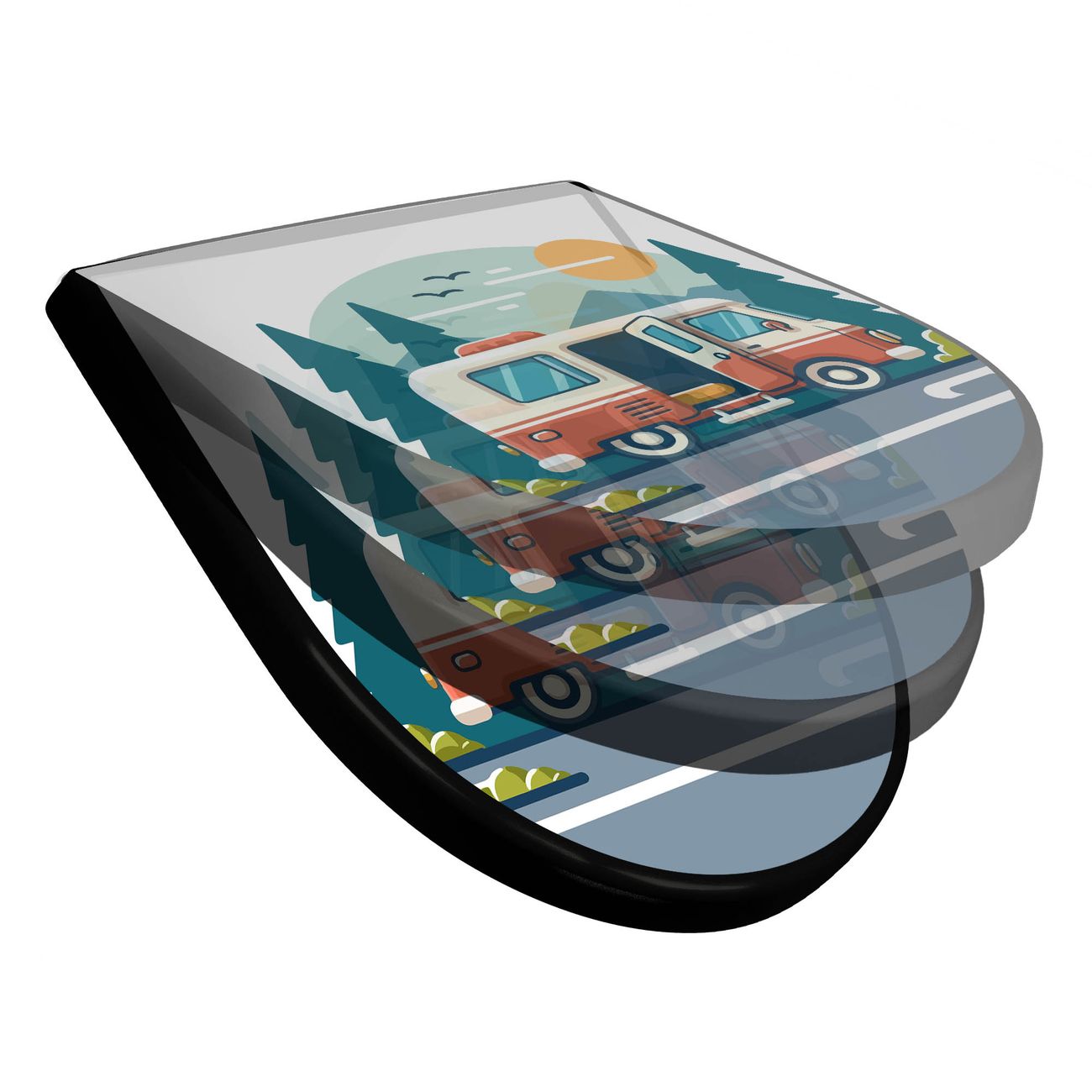 WC Sitz D-Form Schwarz mit Absenkautomatik Motiv Abenteuer Reise
