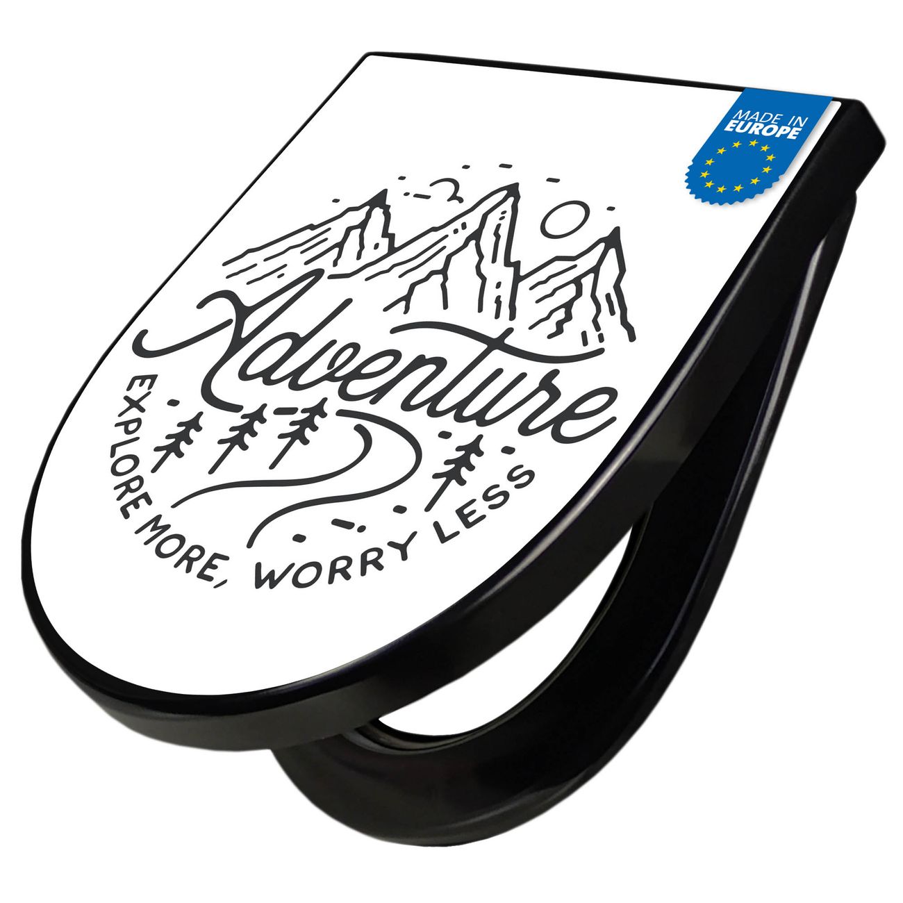 WC Sitz D-Form Schwarz mit Absenkautomatik Motiv Abenteuerliche Bergskizze mit Spruch