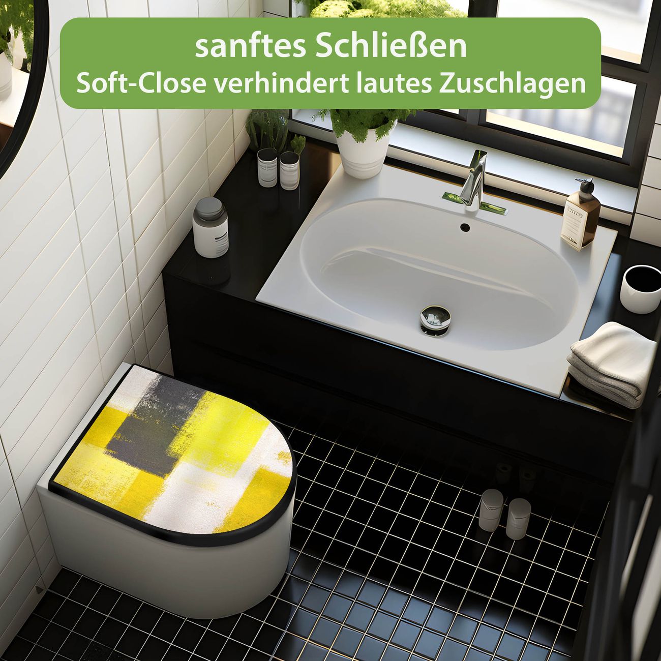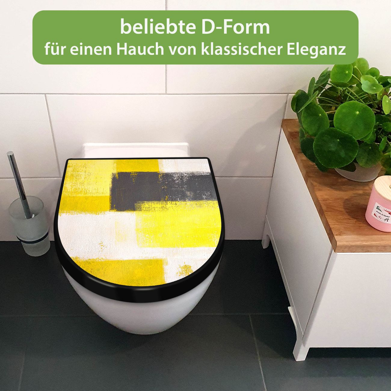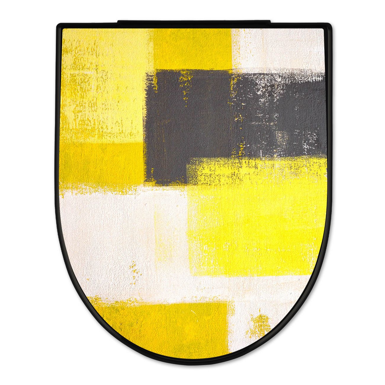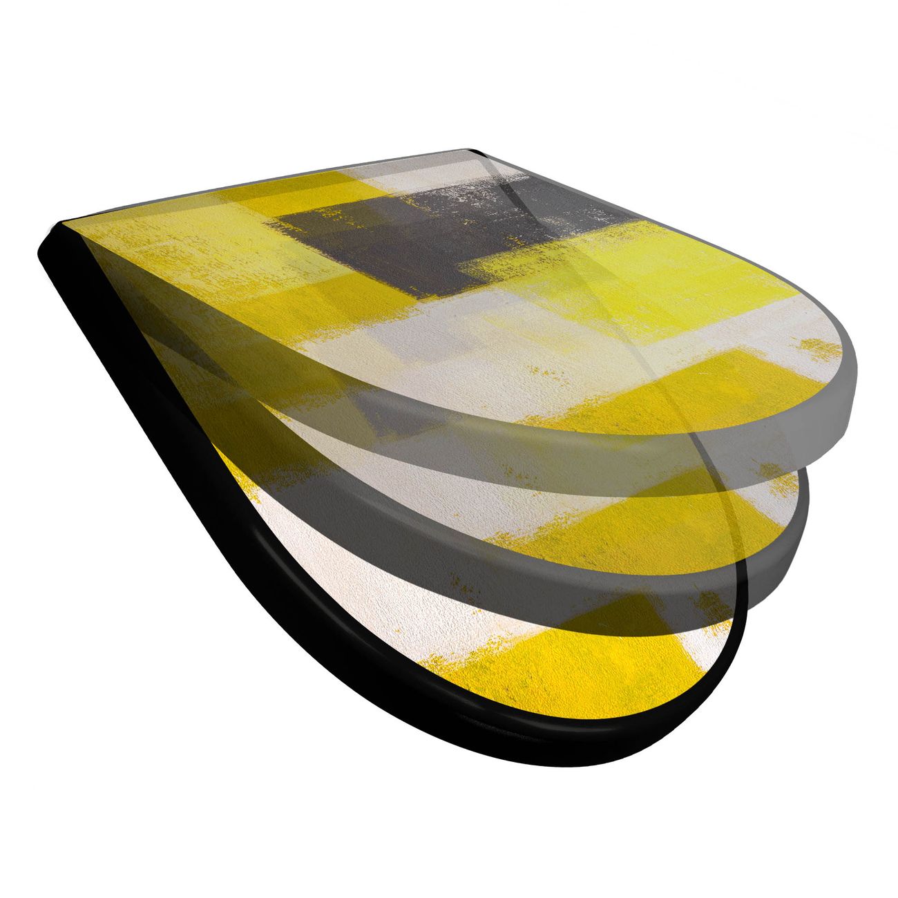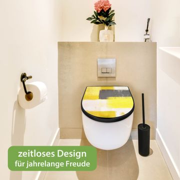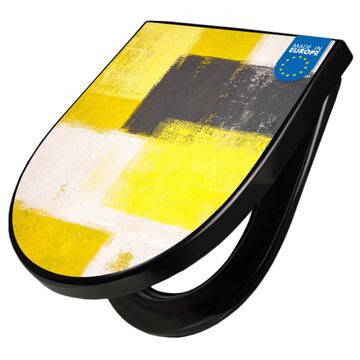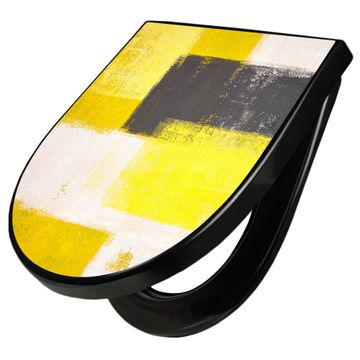 WC Sitz D-Form Schwarz mit Absenkautomatik Motiv Abstrakt Gelb