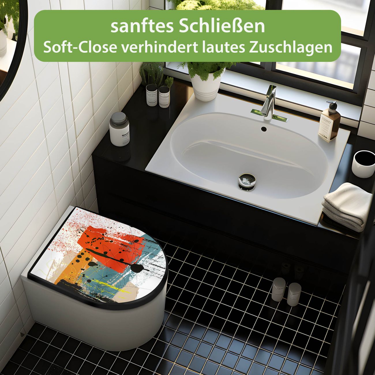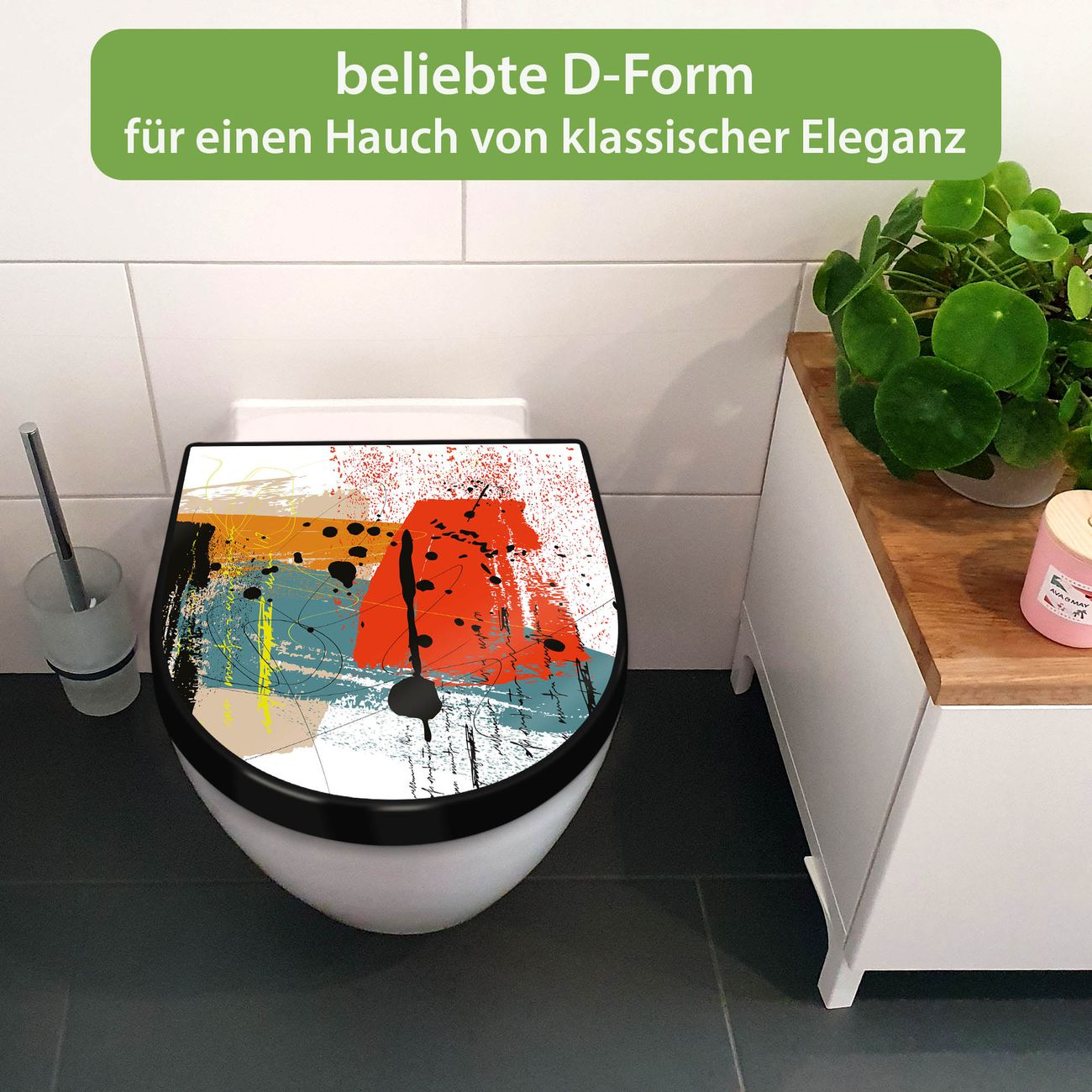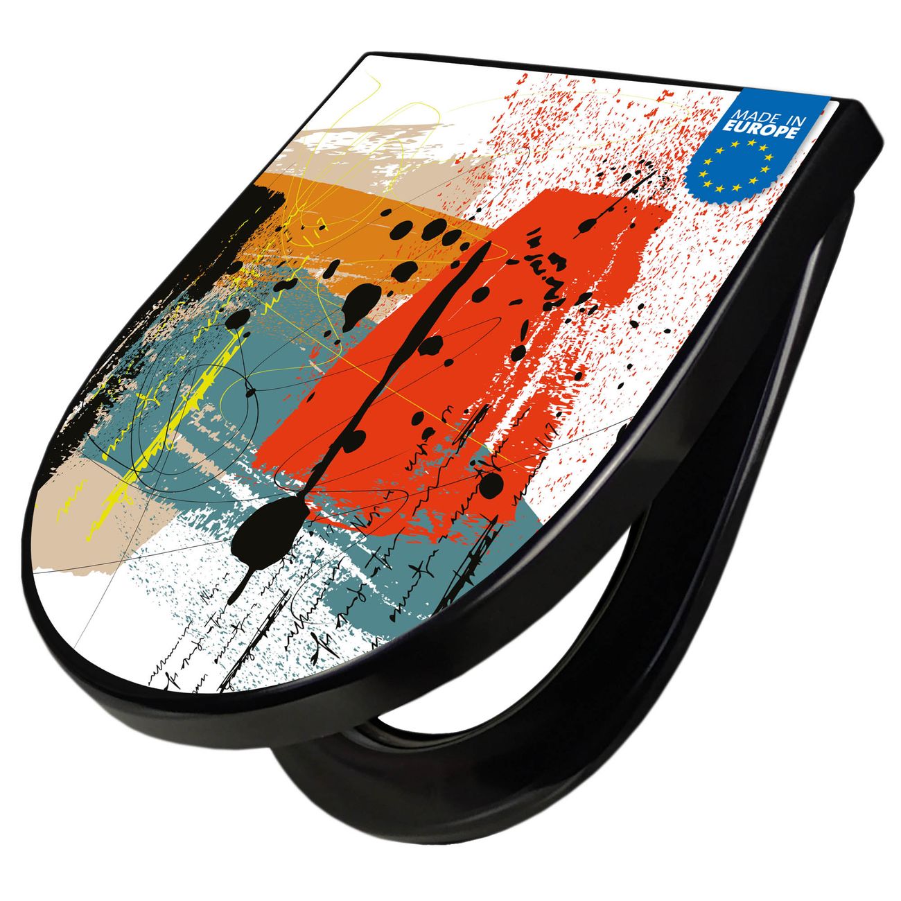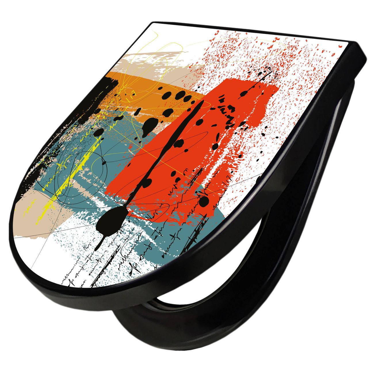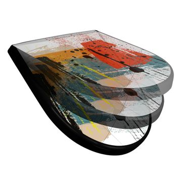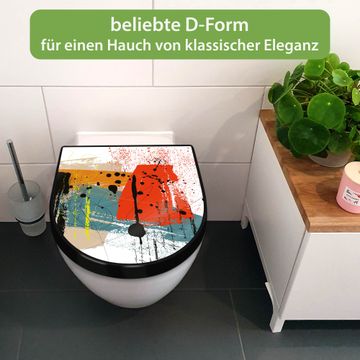 WC Sitz D-Form Schwarz mit Absenkautomatik Motiv Abstrakte Farbexplosion