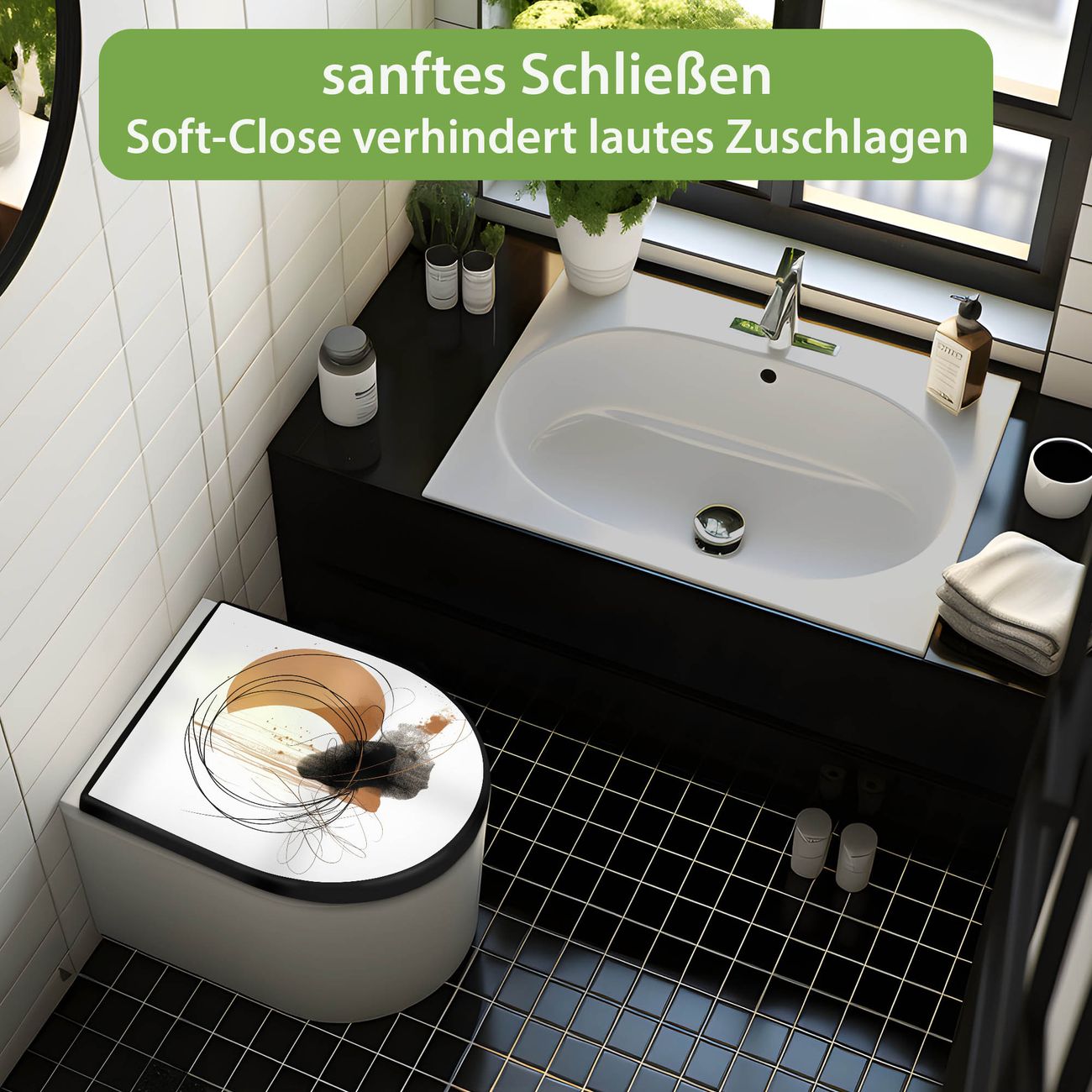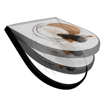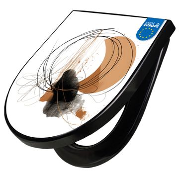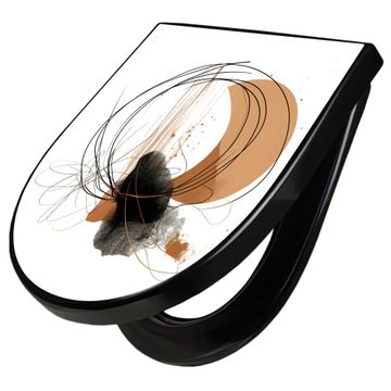 WC Sitz D-Form Schwarz mit Absenkautomatik Motiv Abstrakte Kreisformen