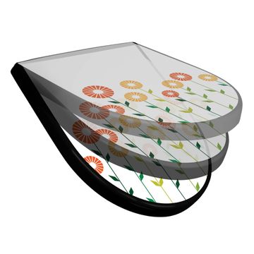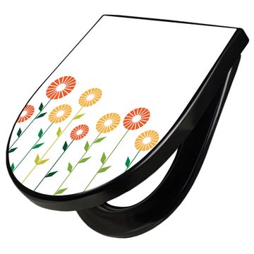 WC Sitz D-Form Schwarz mit Absenkautomatik Motiv Abstrakte Margeriten