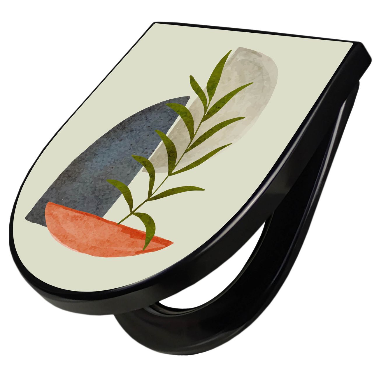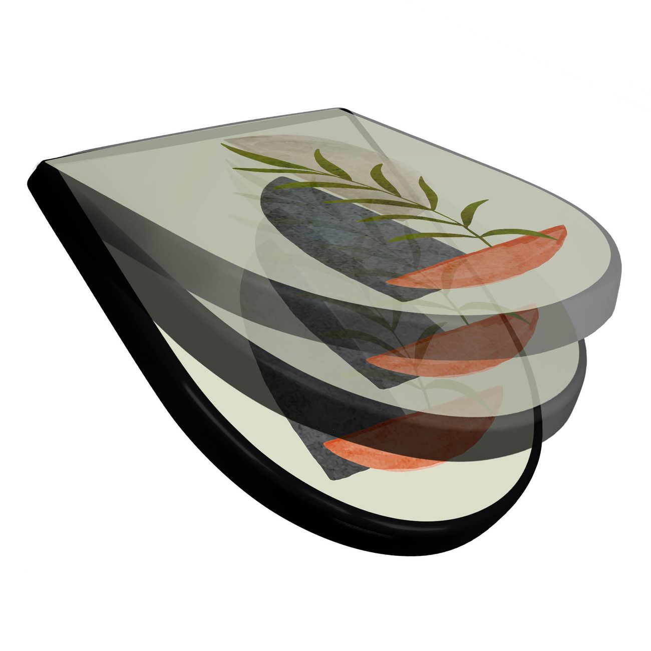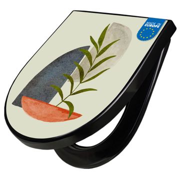 WC Sitz D-Form Schwarz mit Absenkautomatik Motiv Abstrakte Naturgeometrie