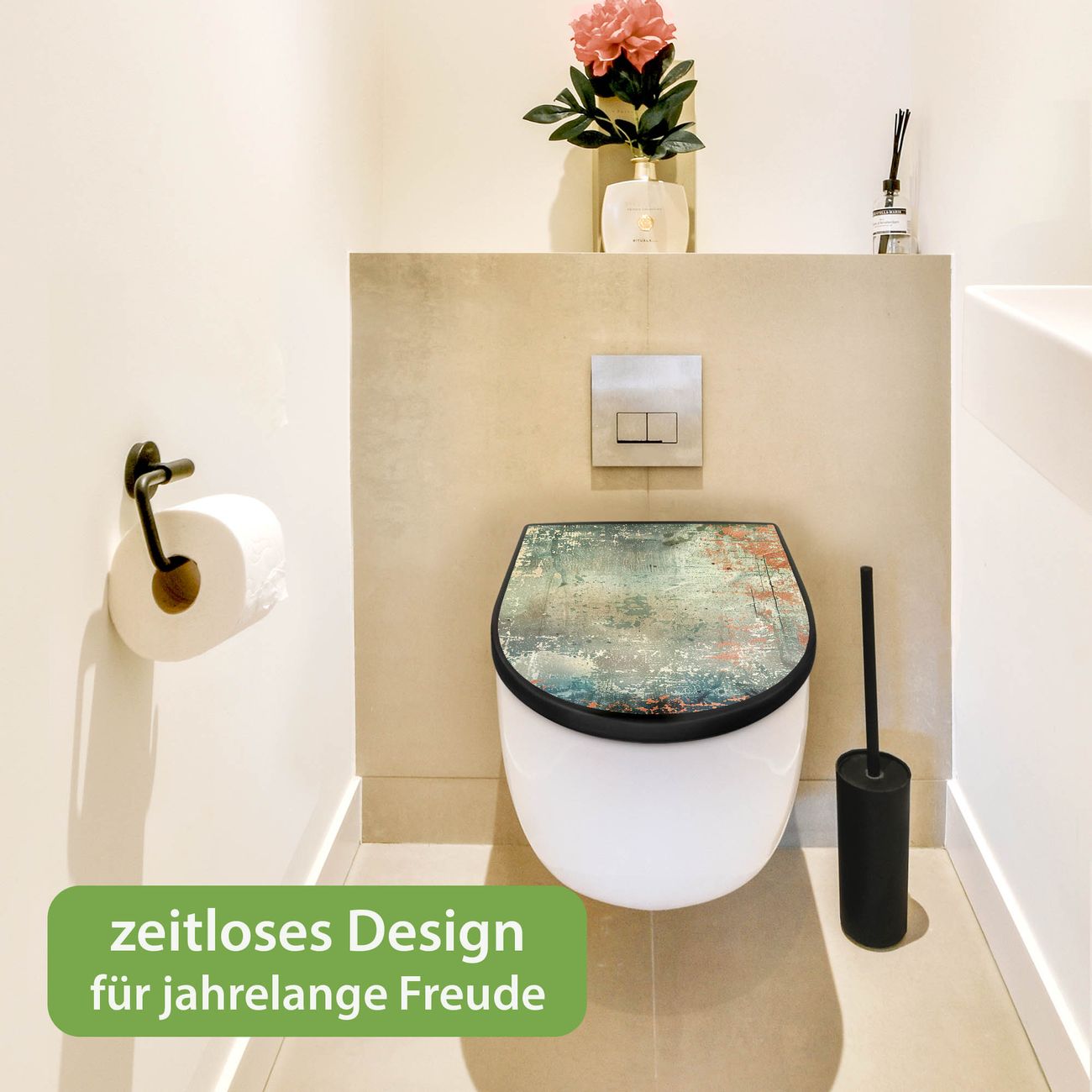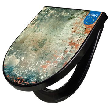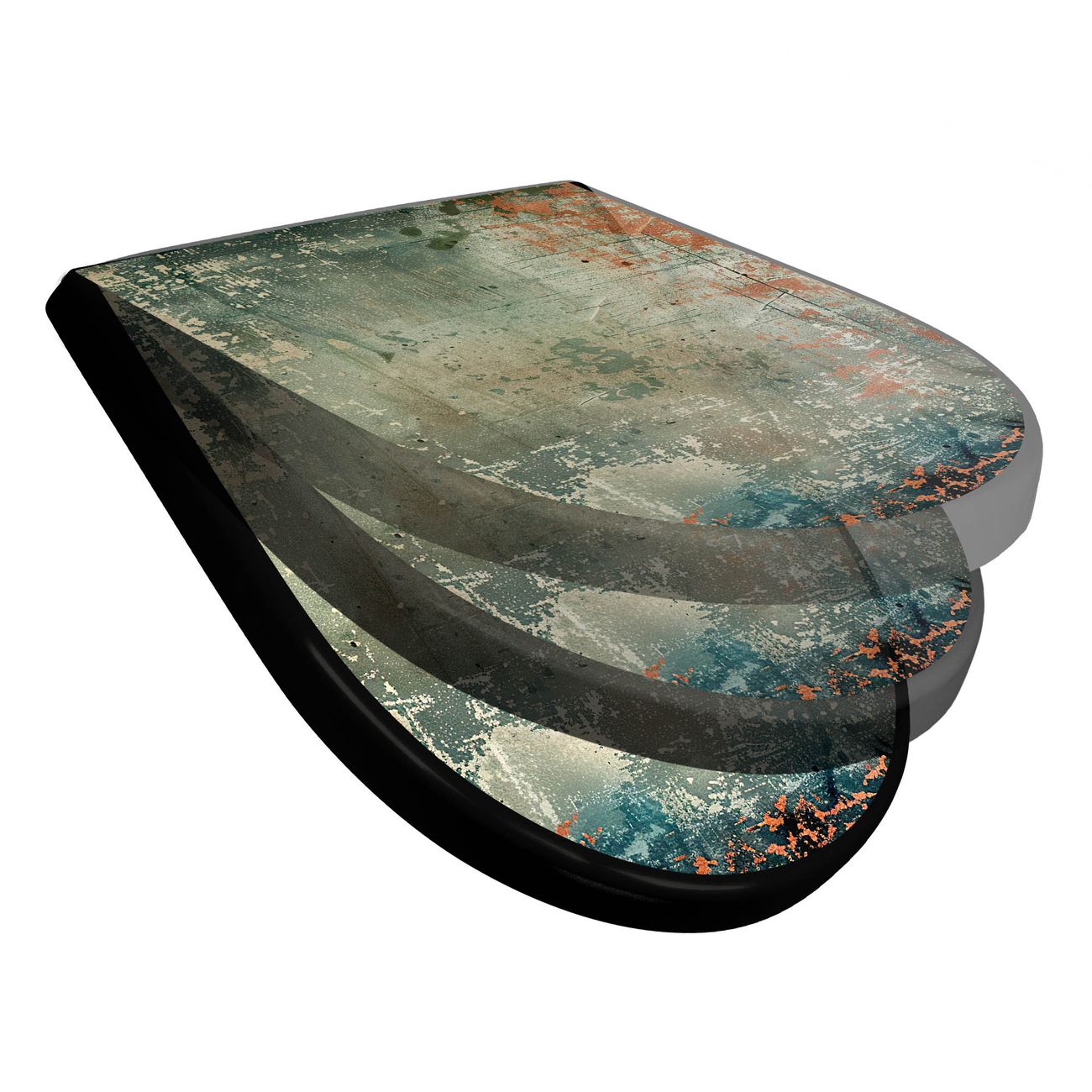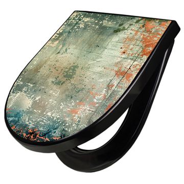 WC Sitz D-Form Schwarz mit Absenkautomatik Motiv Abstrakte Patina