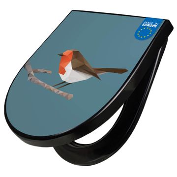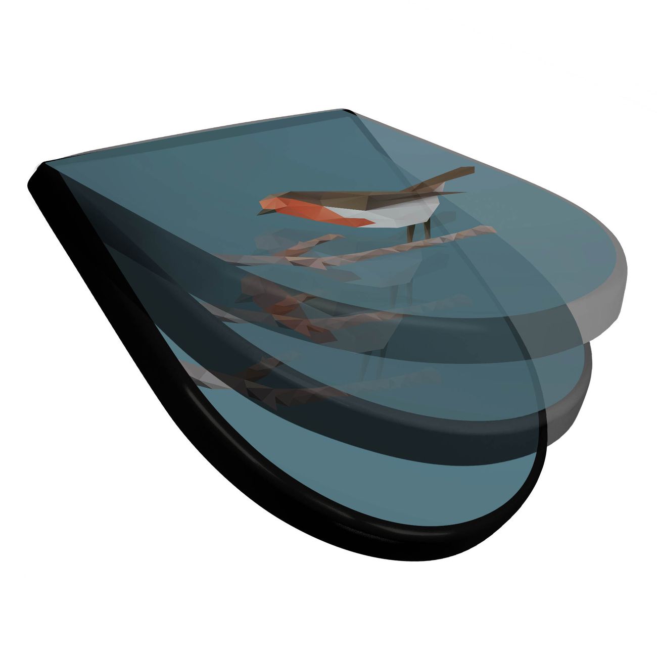 WC Sitz D-Form Schwarz mit Absenkautomatik Motiv abstrakter Vogel