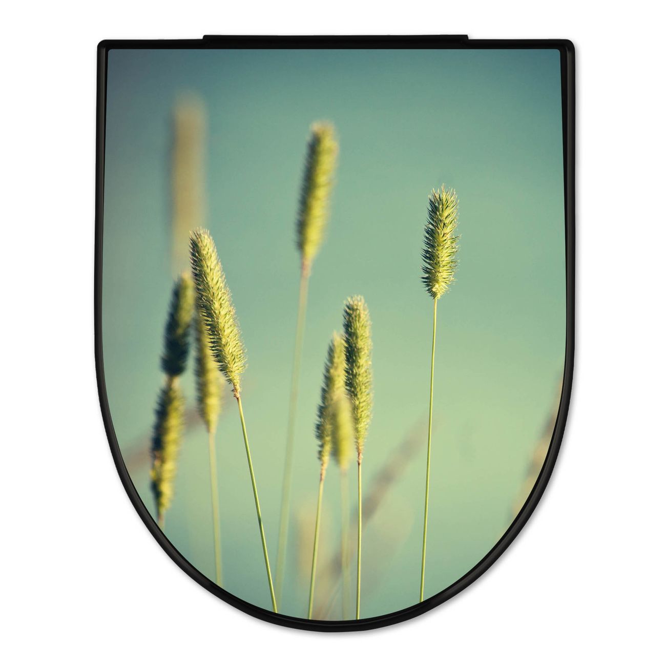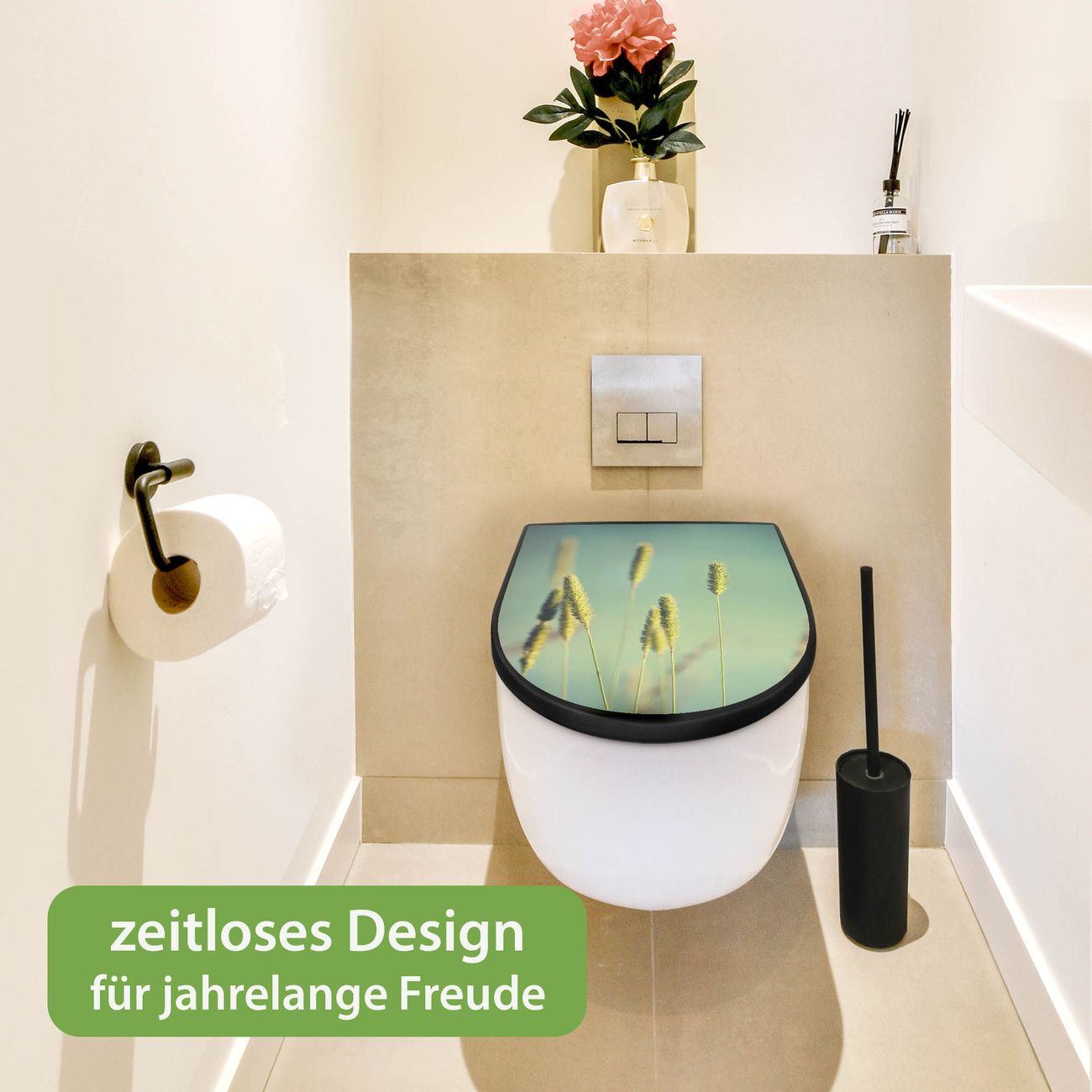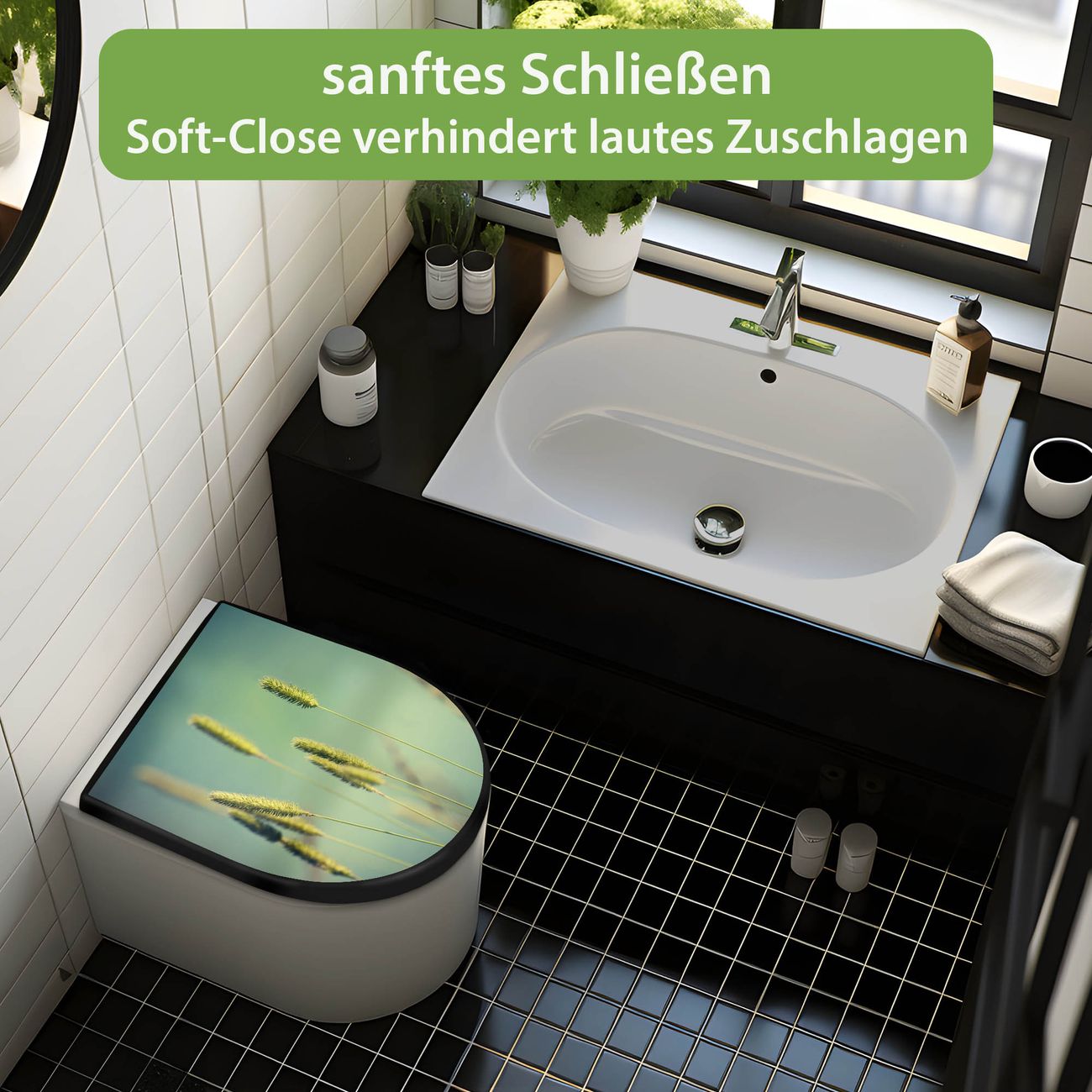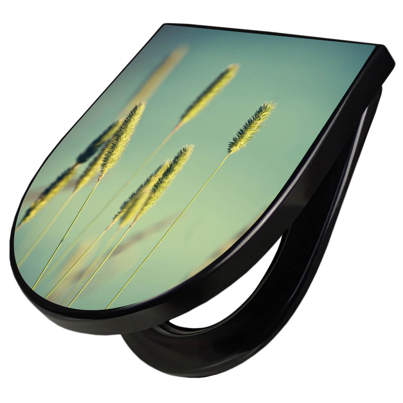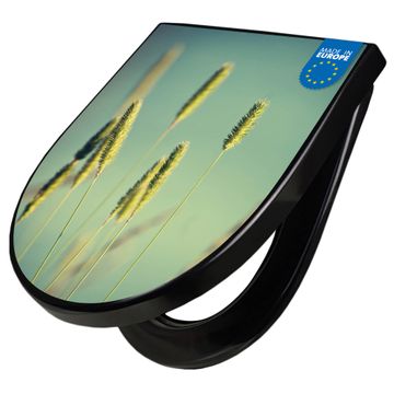 WC Sitz D-Form Schwarz mit Absenkautomatik Motiv Ähren