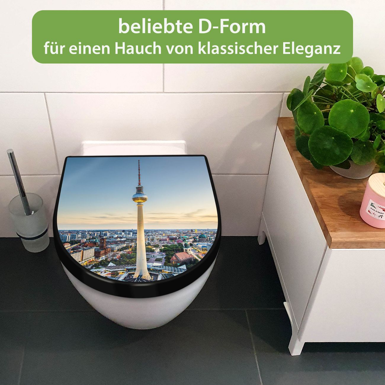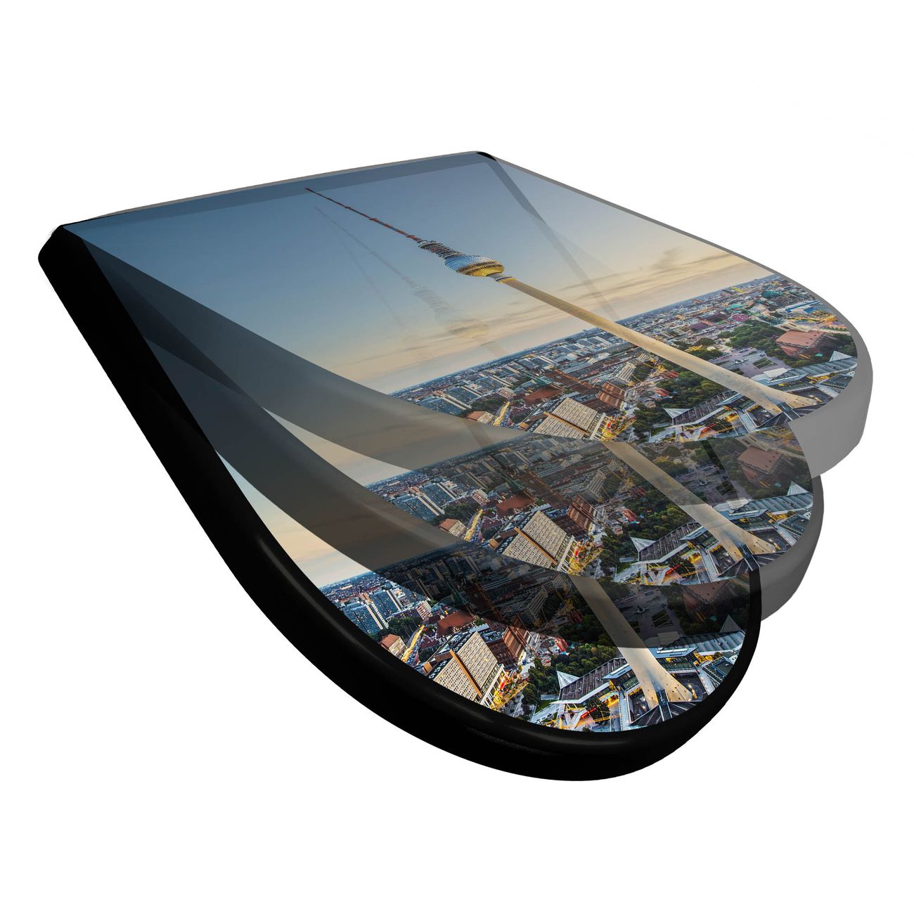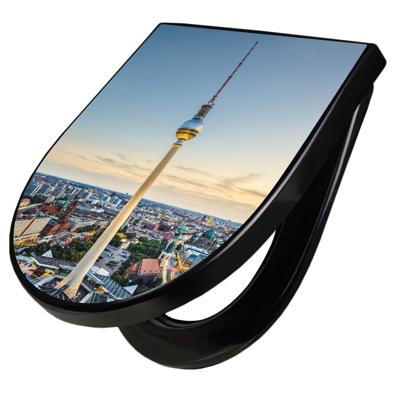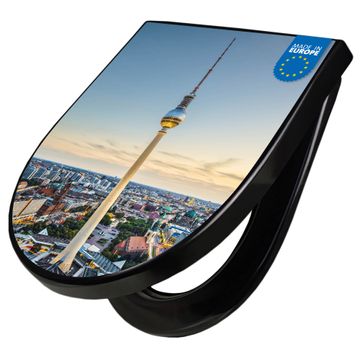 WC Sitz D-Form Schwarz mit Absenkautomatik Motiv Alexanderplatz